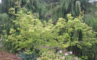 This is a selection with attractive, deeply divided leaves. It will form a shrubby tree that turns yellow to orange in the fall. The foliage creates a lacy effect that balances darker evergreen plants. It will take full sun, but performs best with some shade. It was discovered in Oregon by Warner Monroe, and brought into cultivation in 1965.