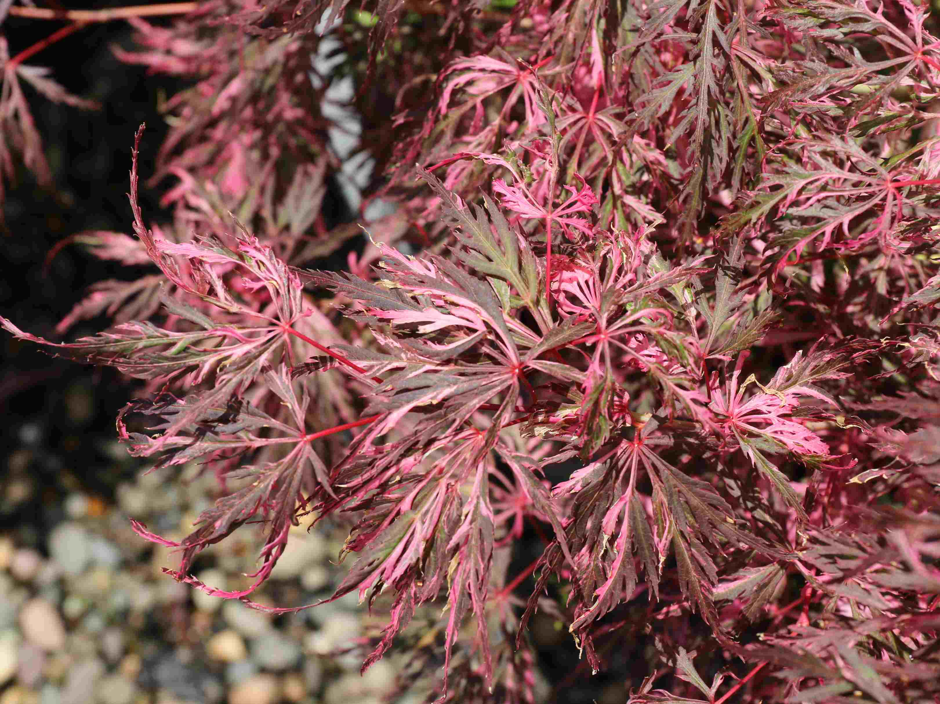 This recent introduction to Japanese maple collectors has a dwarf, mounding form. The finely dissected green leaves are streaked with white, pink, and red. It prefers sun to partial shade in a well-drained soil.