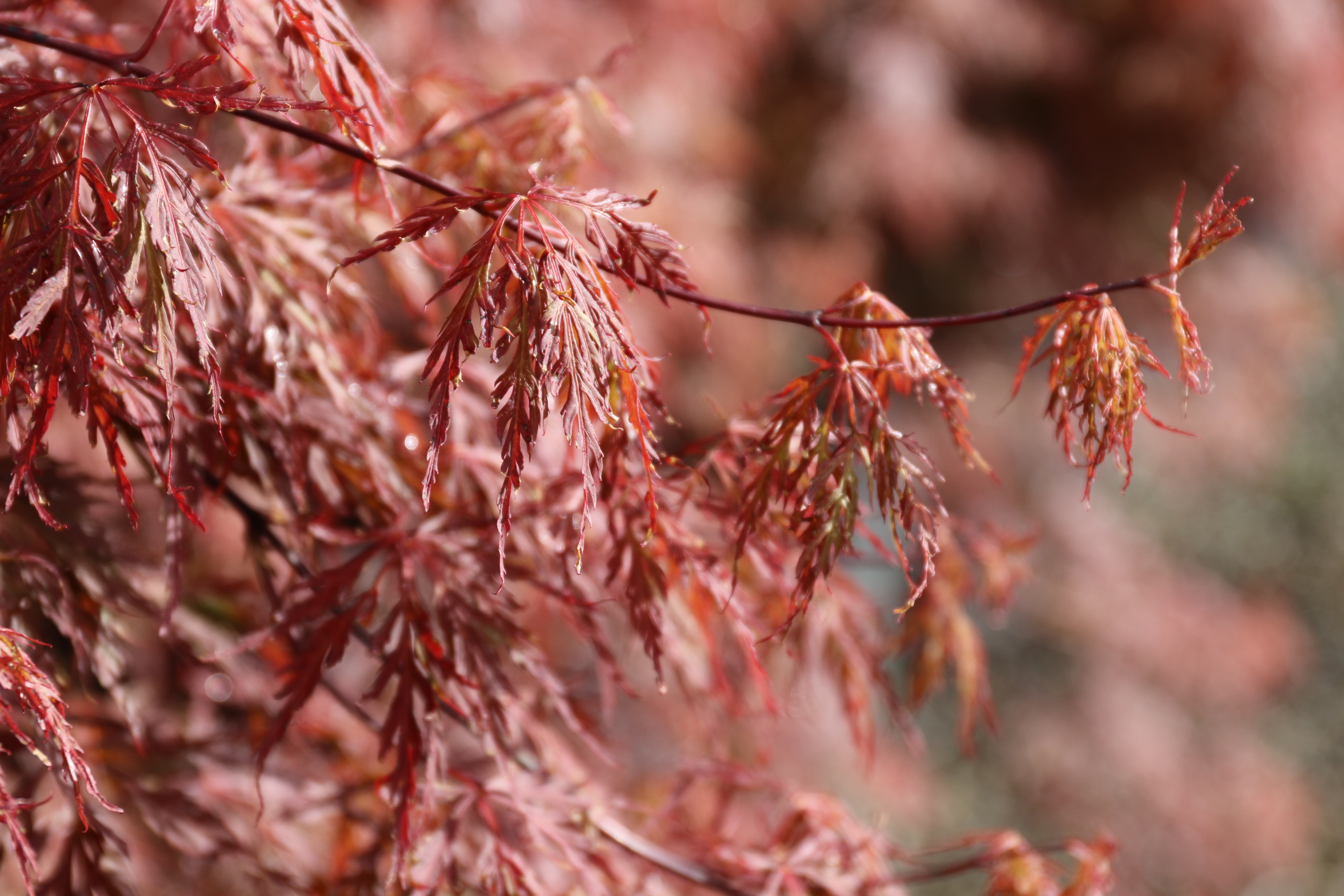 A small laceleaf tree with beautiful cascading branches. In the spring, the leaves emerge orange, changing in summer to a rich red-green with a golden orange overlay. The fall color is orange-red. It performs well in the heat and prefers a well-drained site. It tends to not grow as wide as other lace-leaf types, making it a good choice for containers.