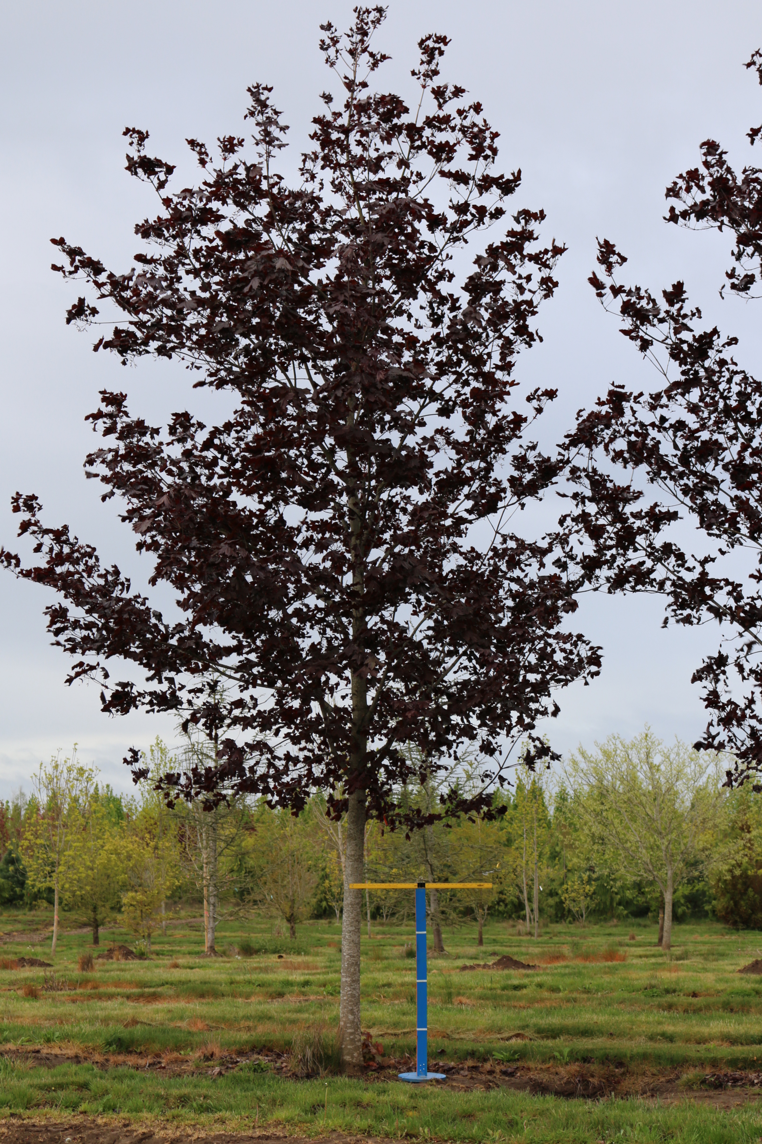 A dense, rounded tree with deep maroon foliage; this tree is very similar to Acer p. 'Crimson King'. It is considered by many to have better cold hardiness. The leaves emerge about two weeks later than Crimson King. It is tolerant of a wide range of soils, heat and drought and performs best in full sun. Selected in 1963 in Oregon.