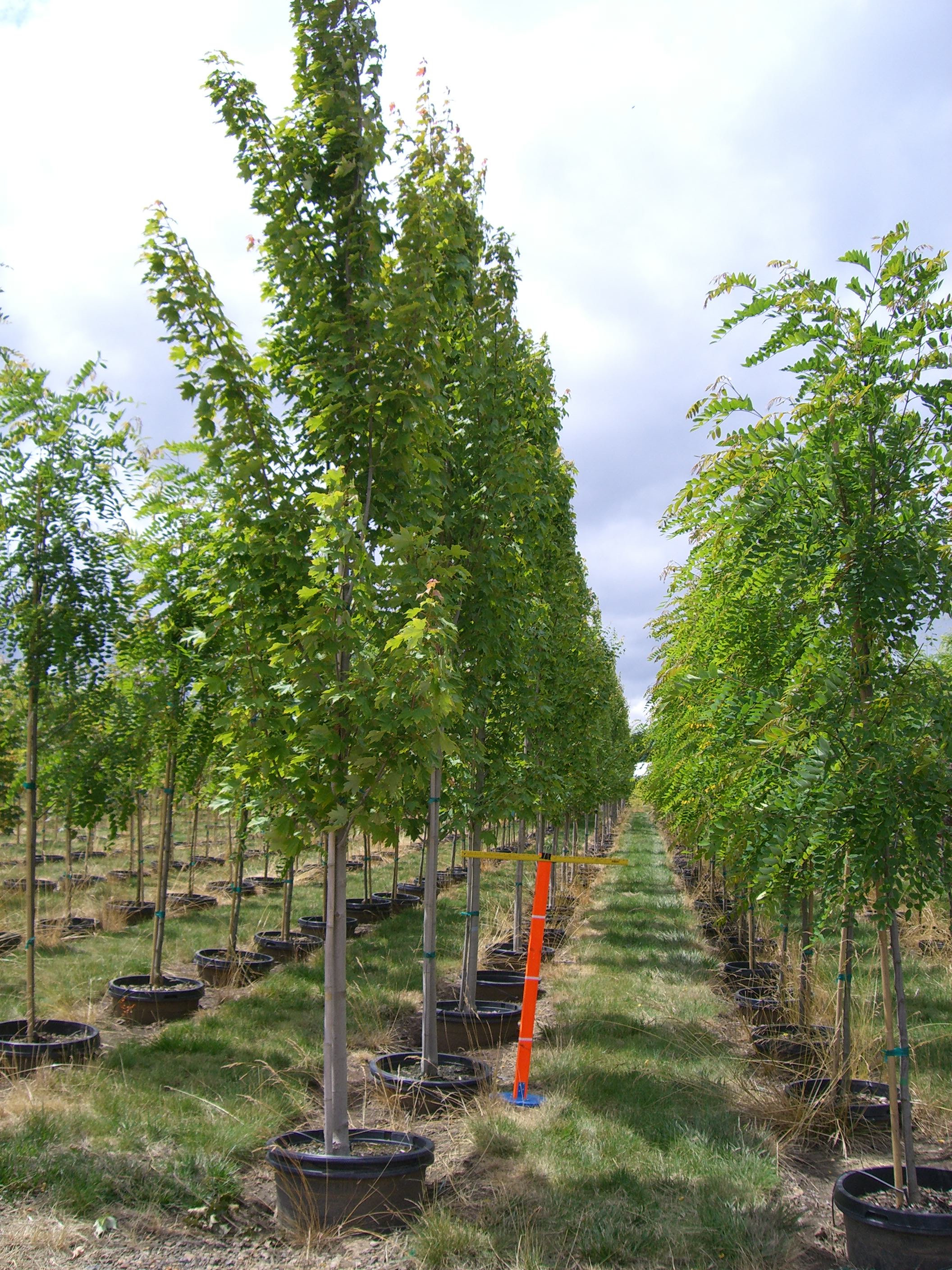 An upright, narrowly columnar tree, good for street tree use. The branching is symmetrical. The summer foliage is dark green, greyish beneath. The fall color is a dependable orange and red. Similar to 'Armstrong', but not as tall. Red Maples prefers average to wet conditions (but not standing water), and acidic soils. It should be grown in full sun. Selected by Scanlon Nursery and named in 1951 after the street it was found on.