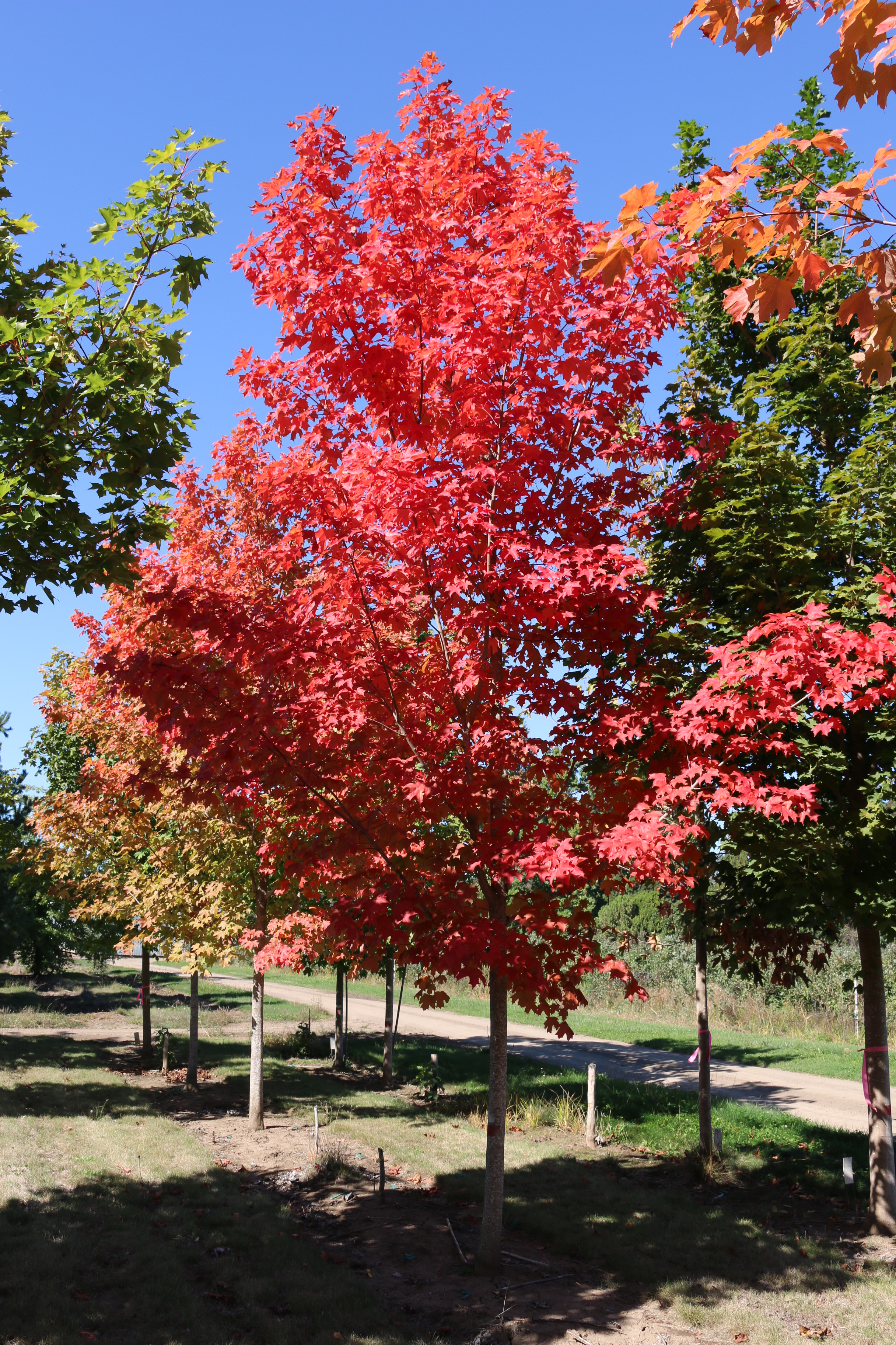 A broadly oval, upright tree with large deep green foliage. Outstanding fall colors in a rich mix of yellow, orange, and red. It prefers a moist, well-drained soil. It is resistant to sun scald, frost cracks and summer heat, wind and drought. Introduced by Bailey's Nursery. PP 11,119.