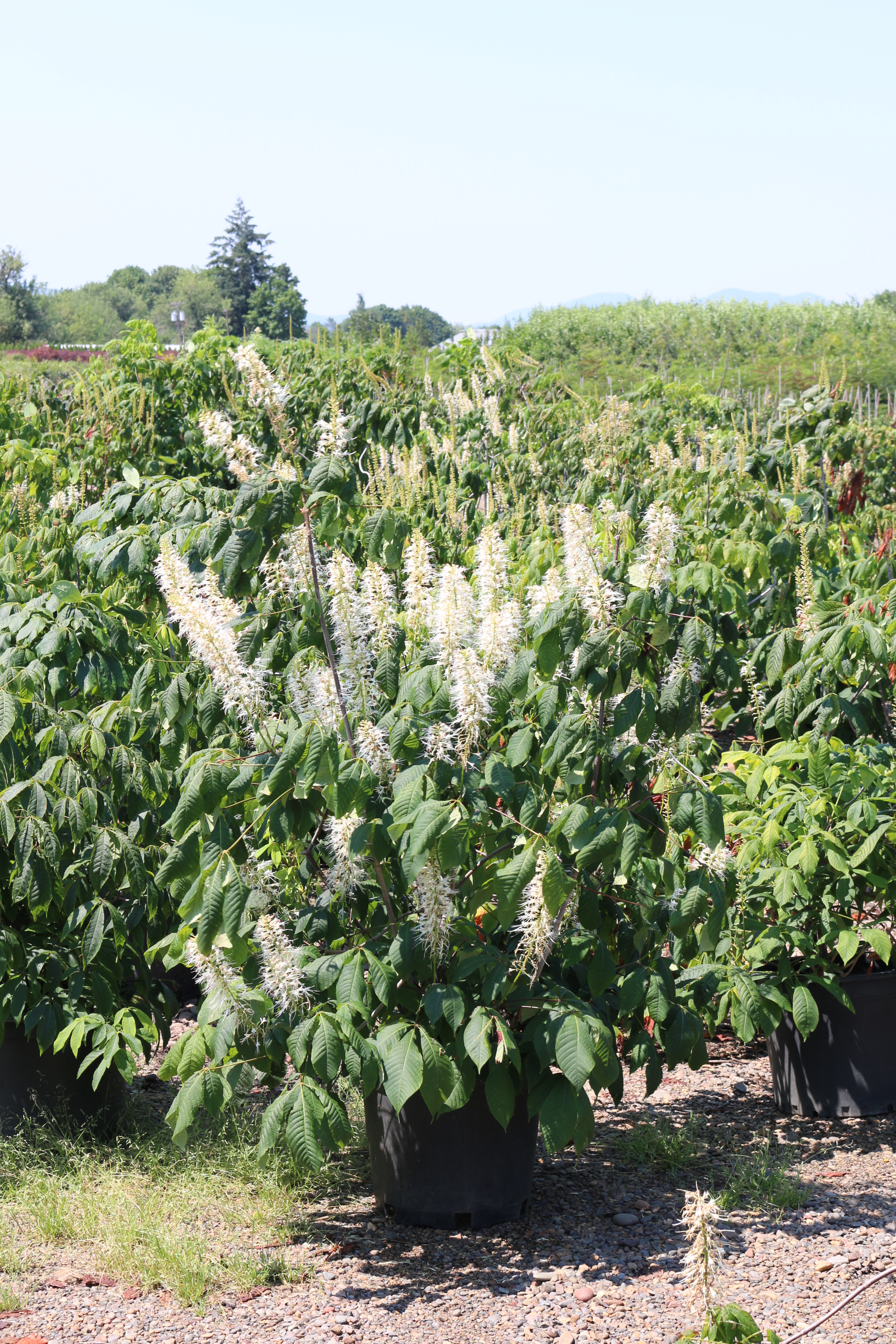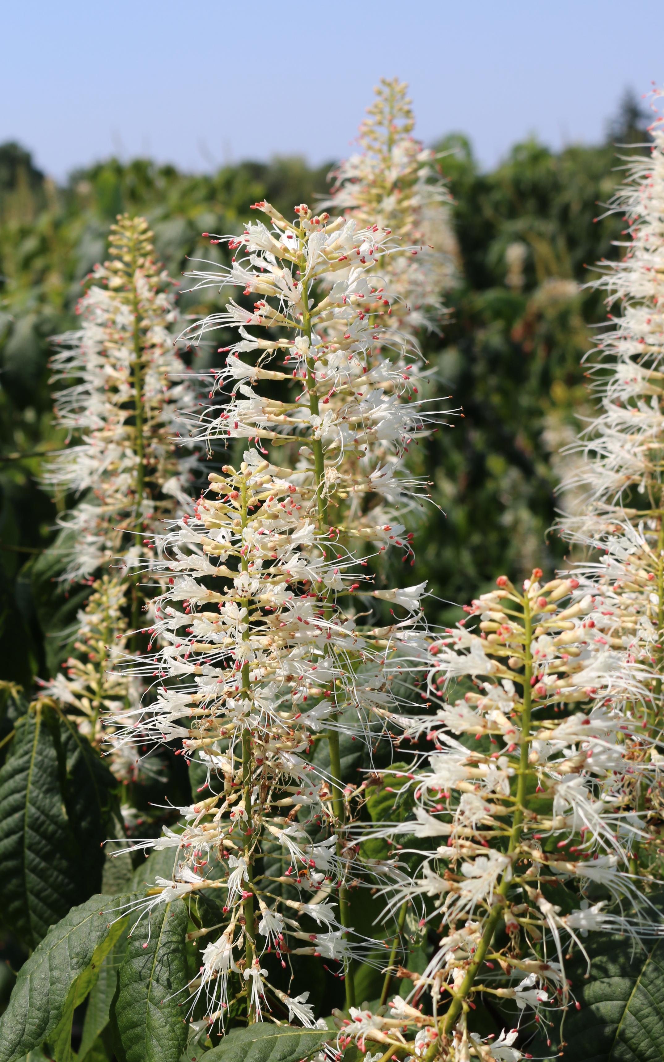 A suckering, multi-stemmed shrub often with an irregular outline. The dark green foliage turns yellow in the fall. The summer blossoms are white and held on 12" tall panicles. Prefers moist soil and some shade, but will take full sun to full shade. Native the the southeastern US, and attracts butterflies and hummingbirds.