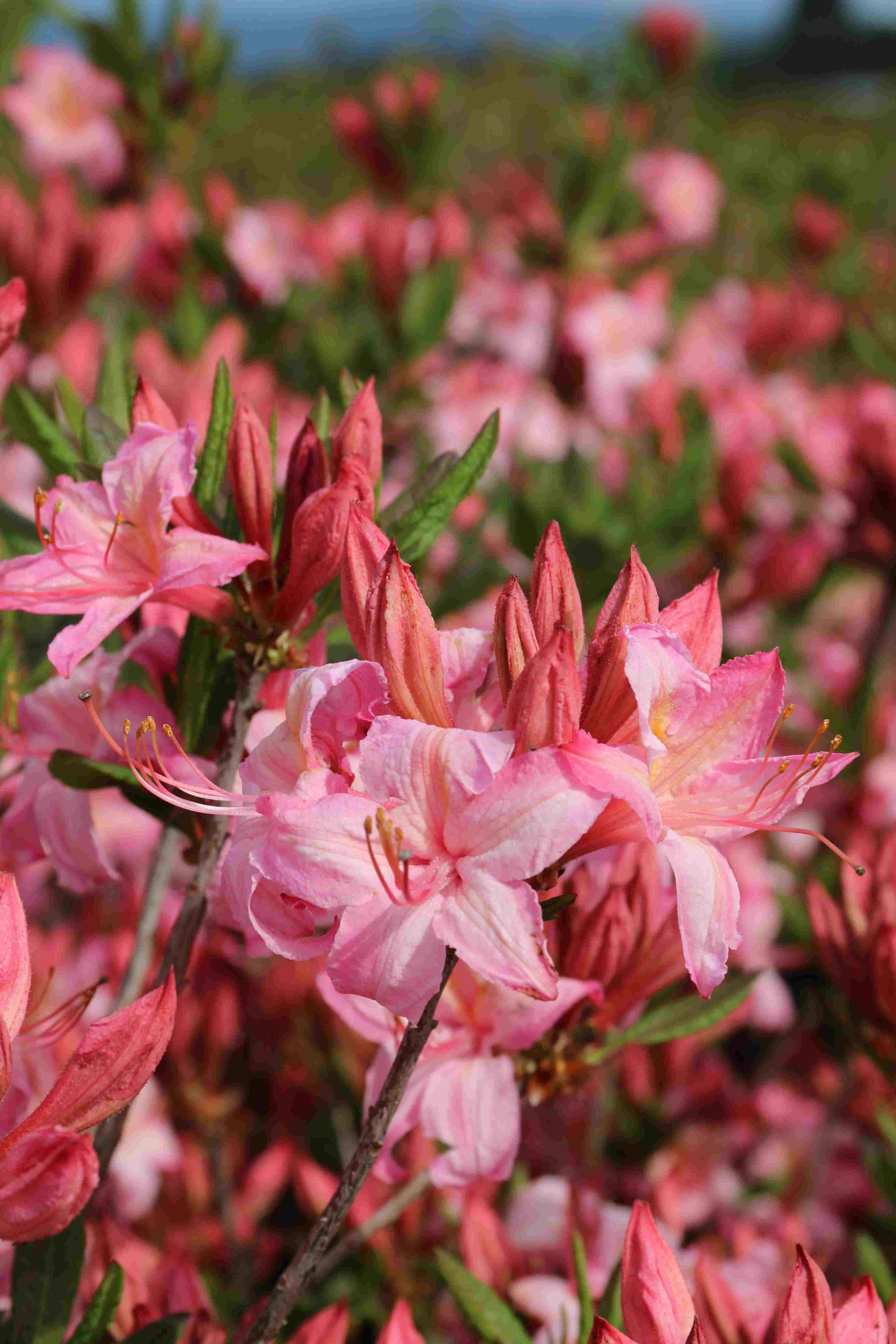 A rounded deciduous azalea that has pale, clear pink blooms, streaked with yellow, in mid to late spring. Flowers are very fragrant and are held in clusters of 8-10. Introduced by the University of Minnesota. It does best in moist, well-drained acidic soils and full sun to part shade.