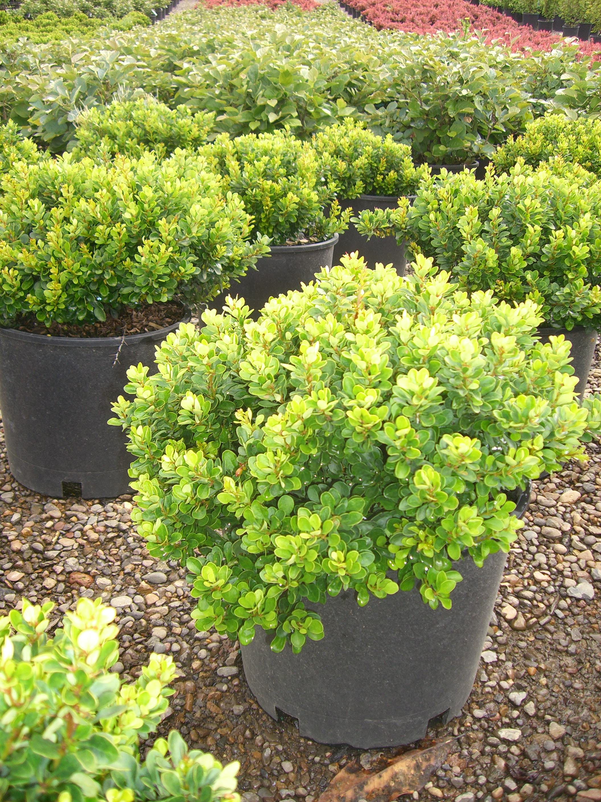 A dense, rounded shrub. Very tight, tidy form. The foliage is rich green when new, maturing to a lustrous, deep green. This gives the plant a very fresh appearance. The fall color is yellow. Tiny yellow flowers may appear in early spring, followed by bright red berries in the fall. It prefers a site with good drainage and full sun. Use as a low hedge or for mass planting.