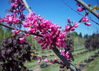 A small, graceful tree with a profusion of spring flowers that are purple-red in bud, opening to intense fuchsia pink to red. Fall color is yellow. The flowers appear before the new foliage. It will adapt to many soils, except very wet ones. It grows best in full sun to part shade. The original tree was found along a roadside in Maryland.