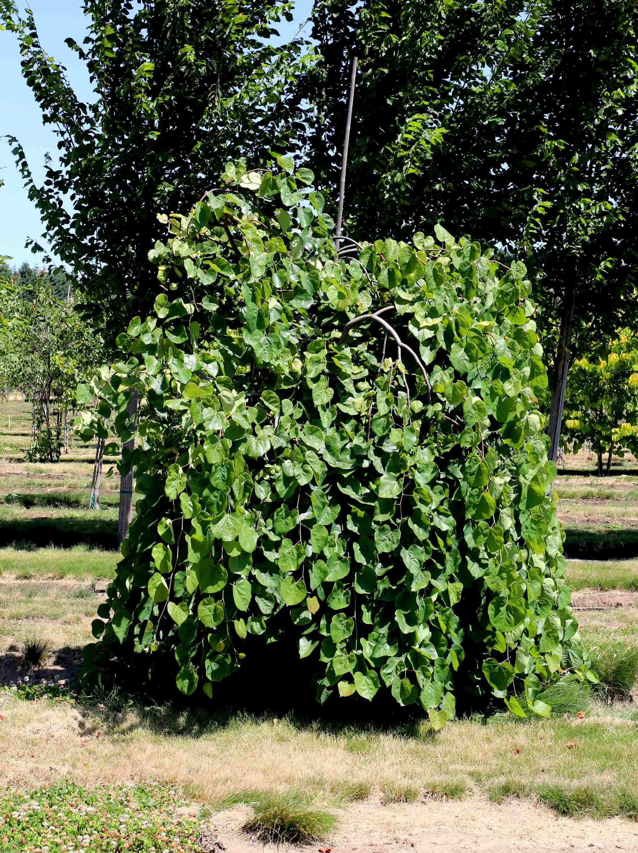 This is a delightful, weeping tree with a twisting growth habit. The branches arch to form an umbrella shaped crown. The height and form will depend on how each tree is staked and trained. It blooms in the spring with a profusion of lavender-pink flowers. It is easily grown in average soils in full sun to part shade. It will perform best in moderately fertile soils with consistent moisture. Avoid wet or poorly drained soils. It was found in the garden of Miss Connie Covey in the early 1990’s. PP 10,328.
