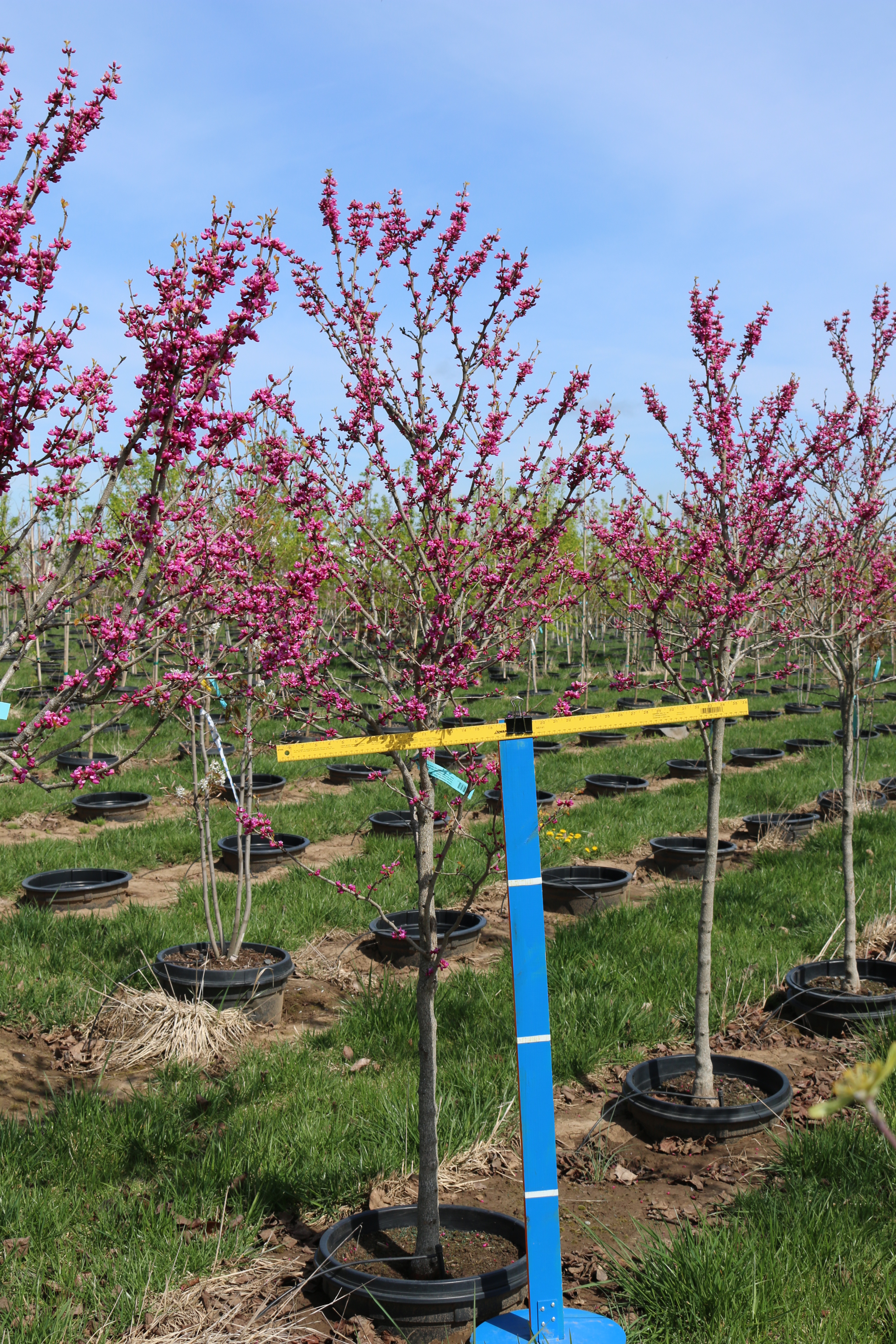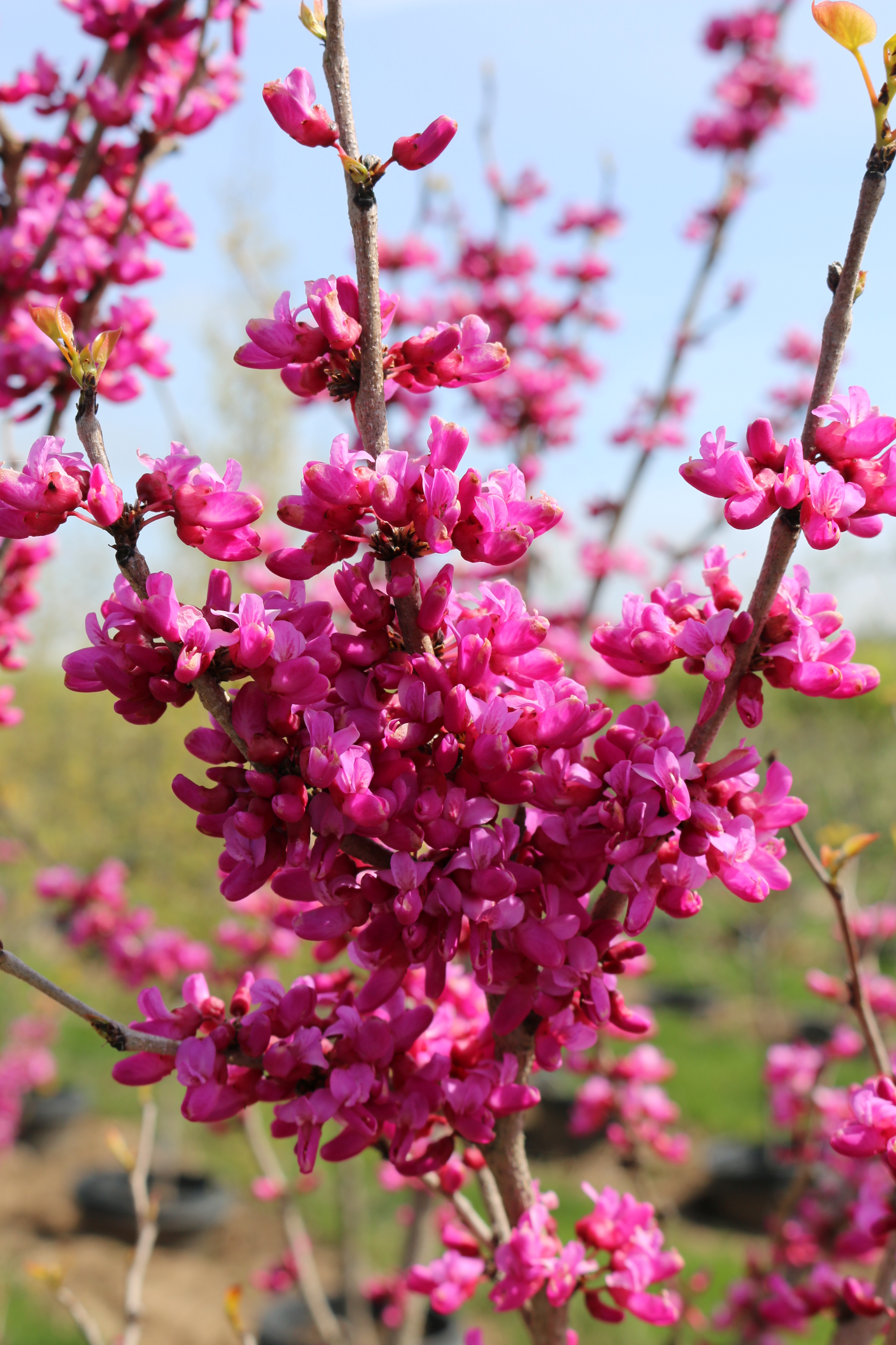 A slow-growing compact shrub with glossy dark green, heart shaped leaves. It is covered with bright rosy mauve flowers in the early spring. Tolerates most soils, except poorly drained. It benefits from regular summer moisture and protection from hot and drying winds. It has yellow fall color. This is a sterile cultivar that was introduced by the U.S. National Arboretum.