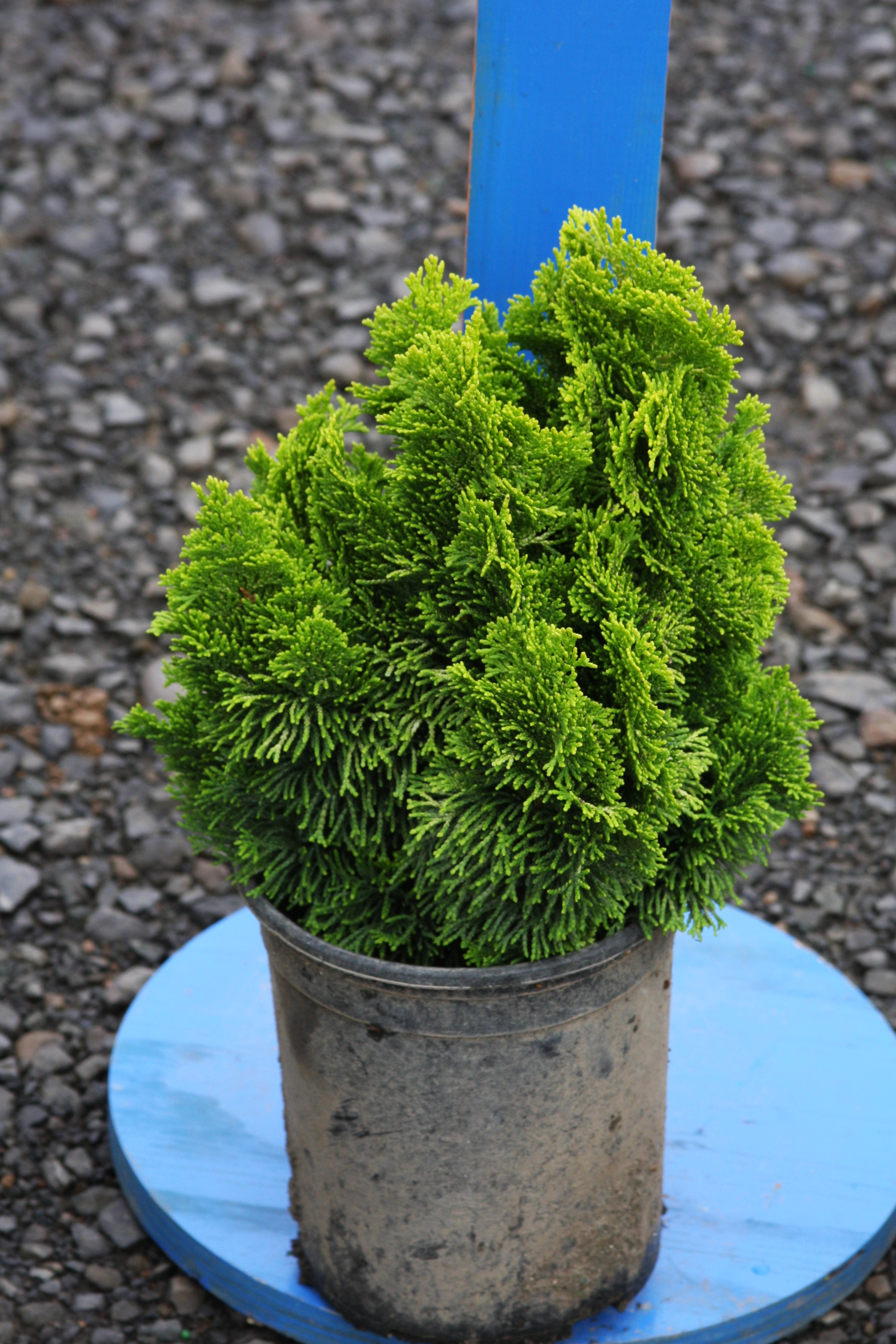 A dense irregular, very slow growing shrub. The foliage is in small fans of golden yellow, with brighter tones of paler yellow. As the foliage matures, it darkens toward green in the center of the plant. The form becomes a gracefully layered, narrow pyramid. It will grow best in light shade, in many soils, as long as they are well-drained. Once established, they are drought tolerant.