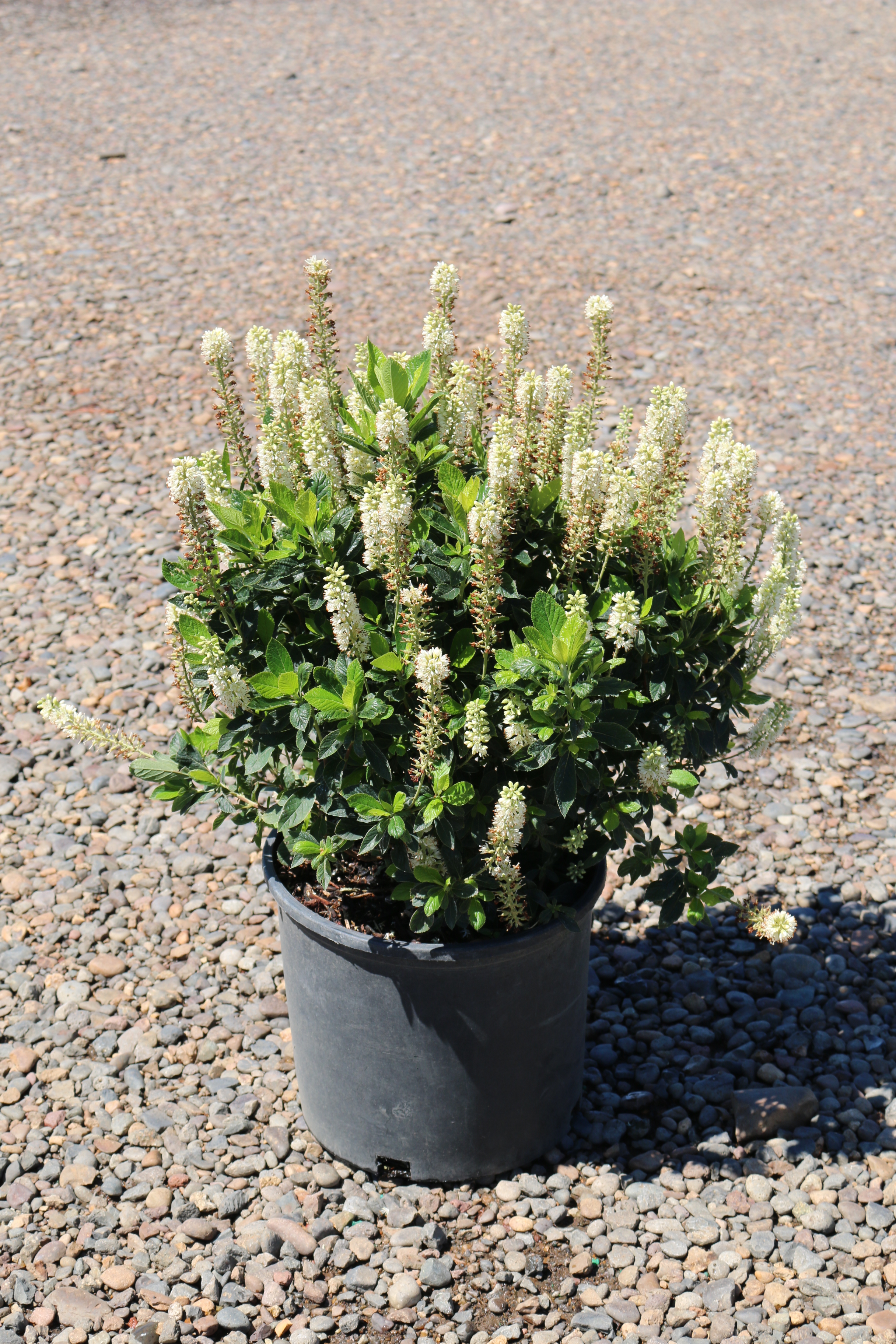 A small, compact shrub with dark green foliage. It has an abundance of white, fragrant flowers in mid-summer. They are held in an upright manner, like candles. Fall foliage color is golden yellow. It prefers full sun to part shade and is tolerant of medium to wet soils. Use in a shrub border, foundation planting, or near moist areas.