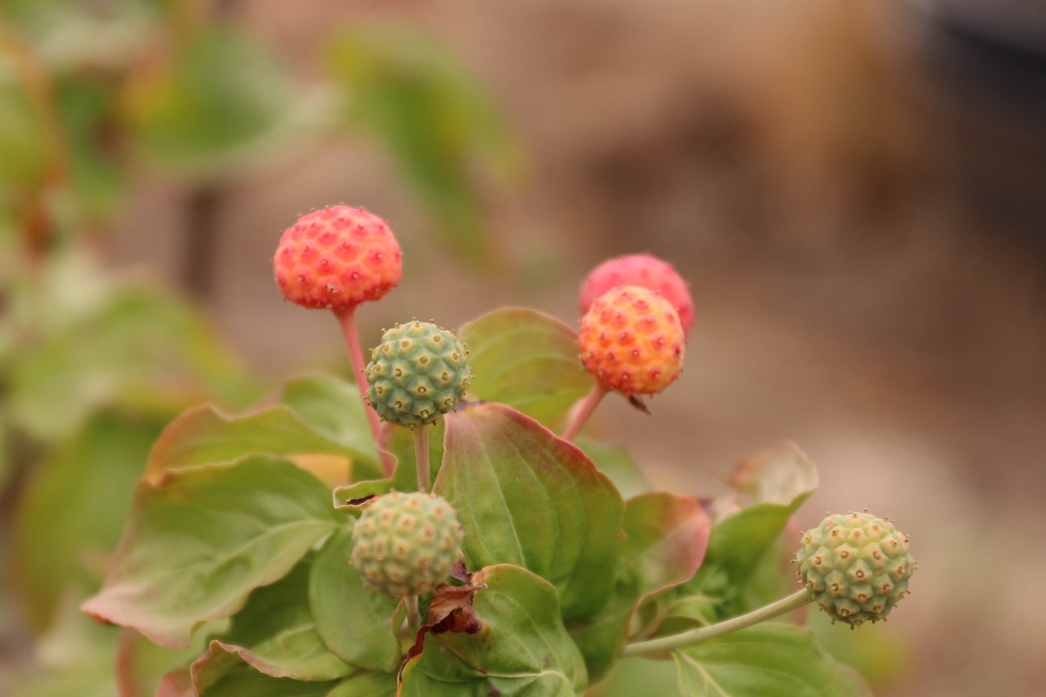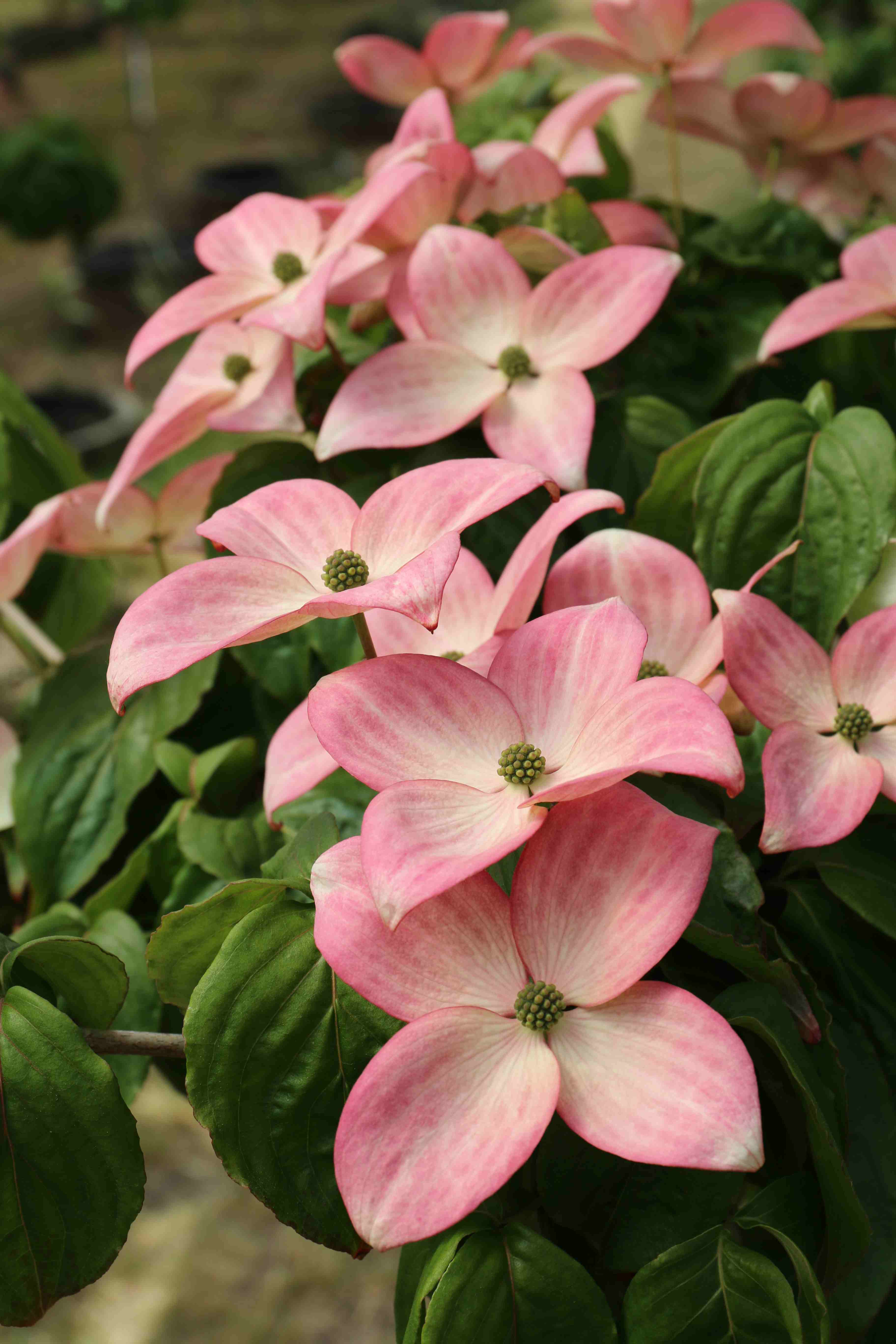 A wide, rounded tree with green summer foliage that turns tones of red in the fall. The large, long lasting bracts are dark pink to rose pink, the color being influenced by the season. It will also produce red fruit in the fall. The bark is exfoliating. Prefers moist, well-drained acidic soil. Selected by Jim Schmidt of Don Schmidt Nursery. PP 9,283.