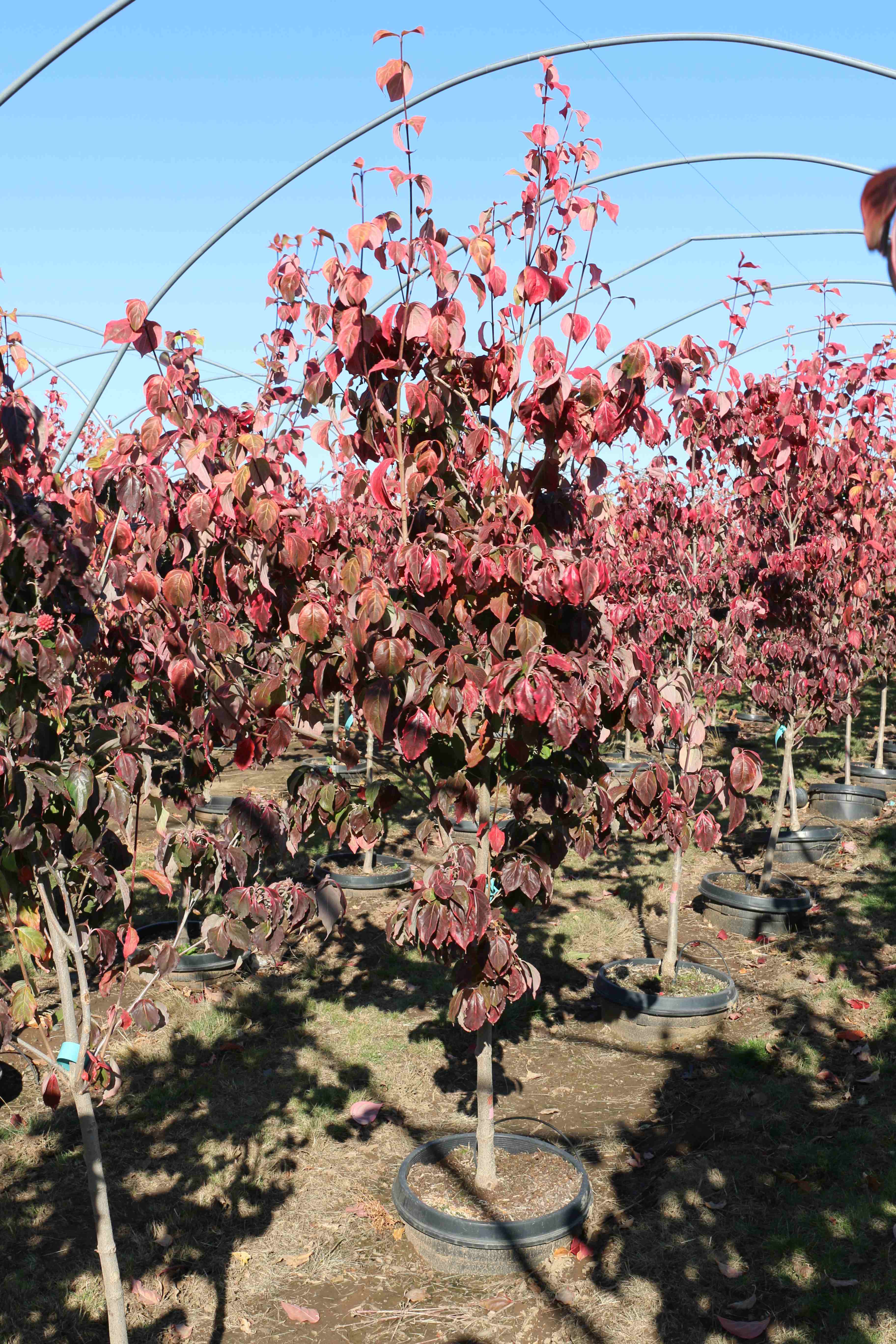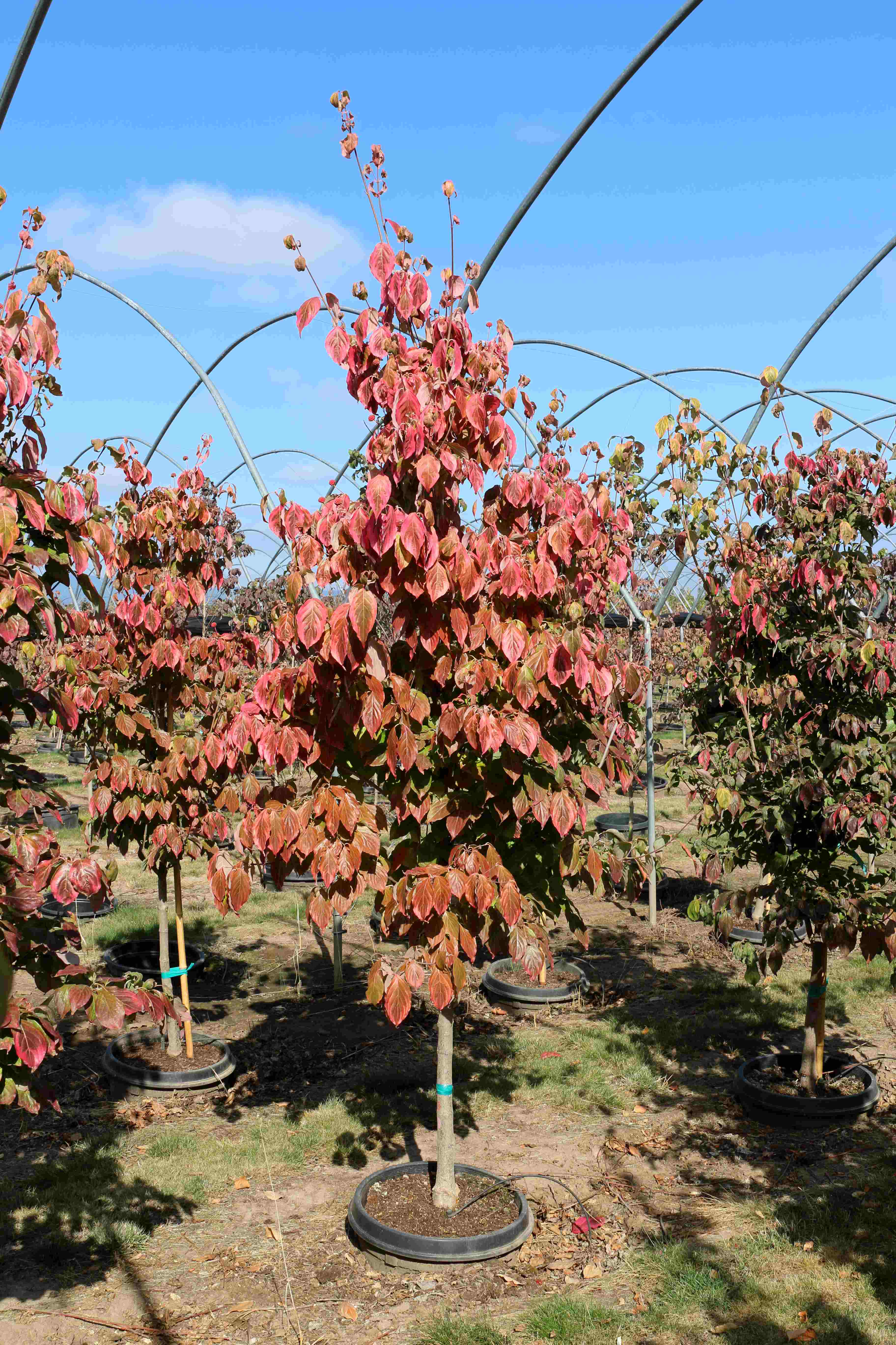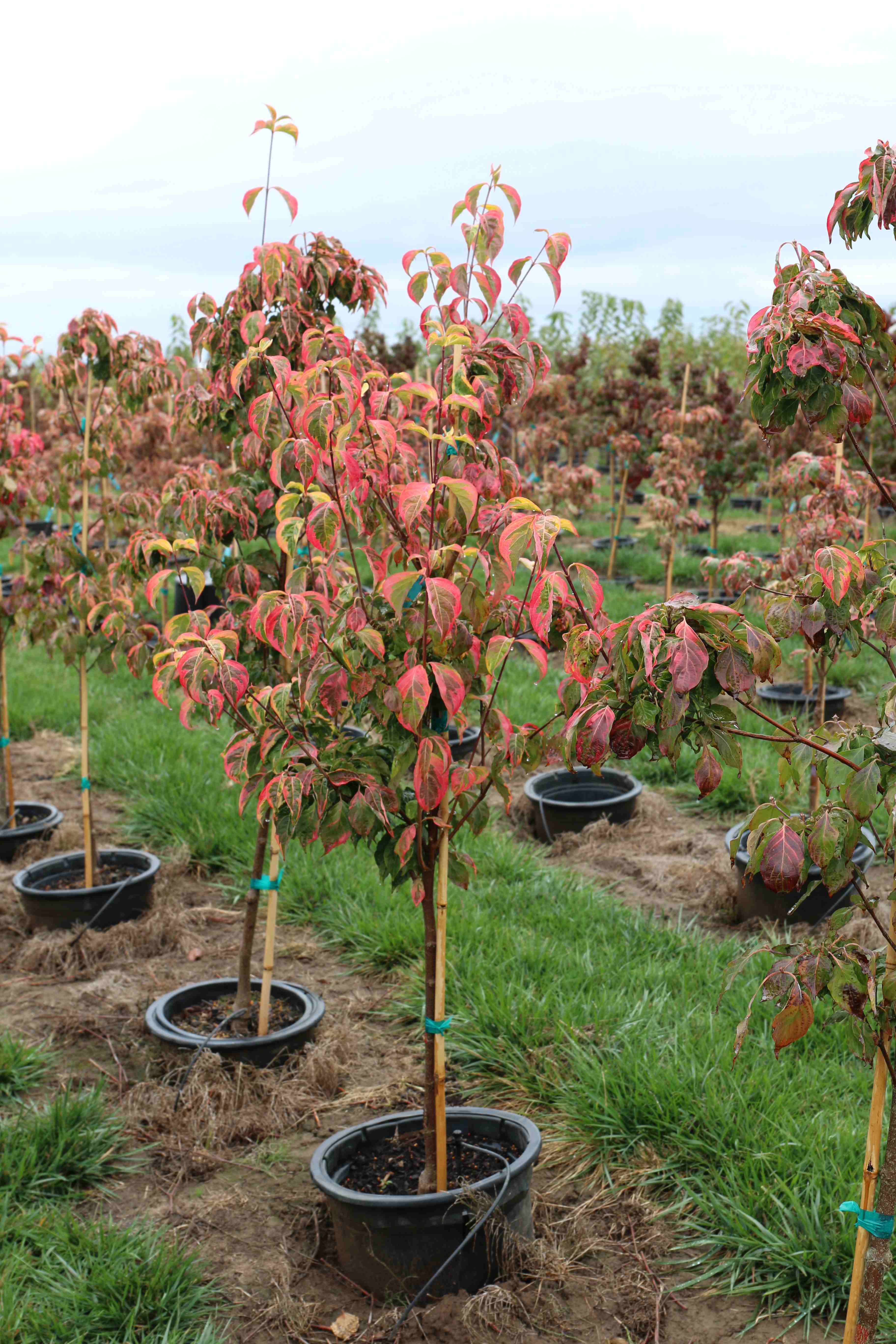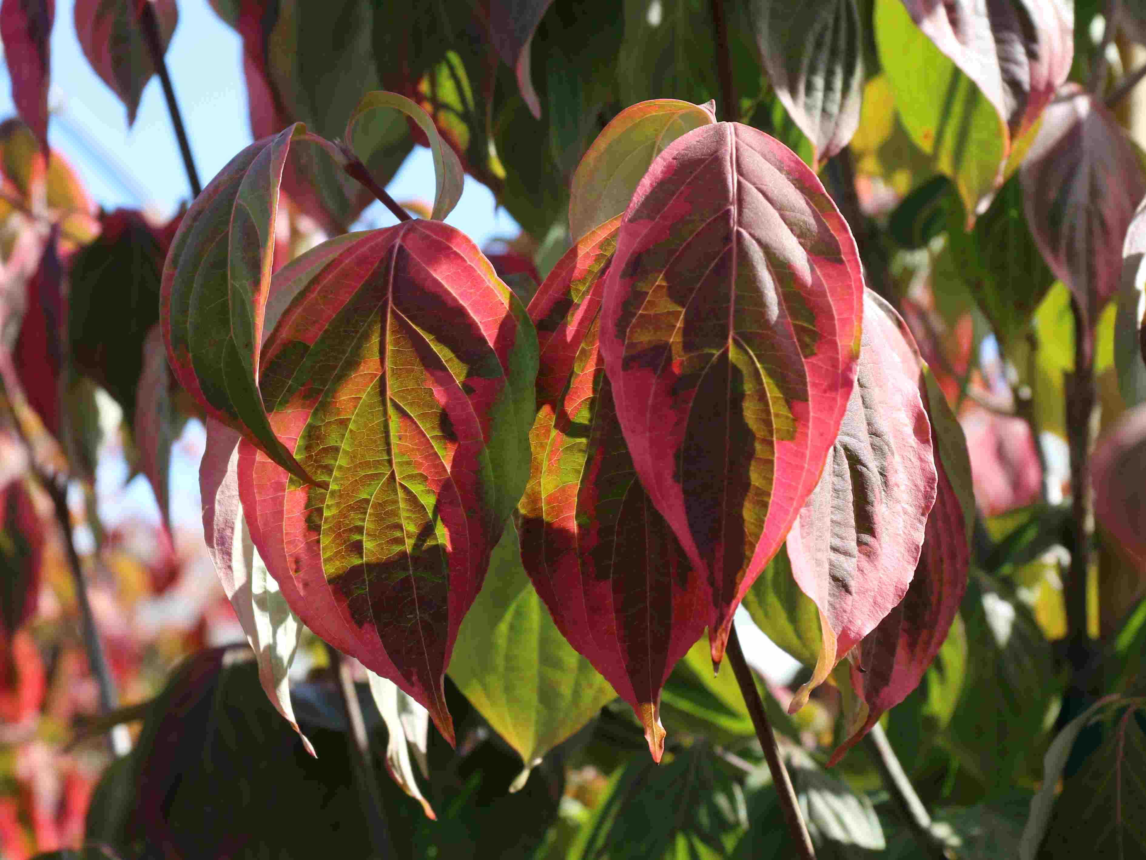 A disease resistant upright tree with yellow and green variegated foliage. It has large white bracts in May or June. The foliage turns orange and red in the fall. It prefers full sun to partial shade, in a rich, well-drained soil. It is a sport of Cornus X 'Celestial' by Don Shadow.