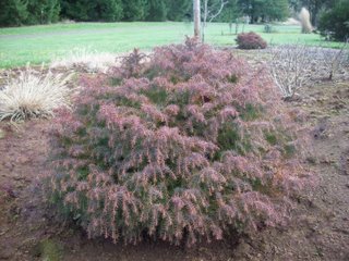 A dwarf, evergreen, mounding shrub. The finely textured blue-green foliage turns russet to bronze in winter. Needs little or no pruning to maintain the tidy form. Protect from wind. It prefers full sun to part shade in a well-drained soil. Water during dry weather.