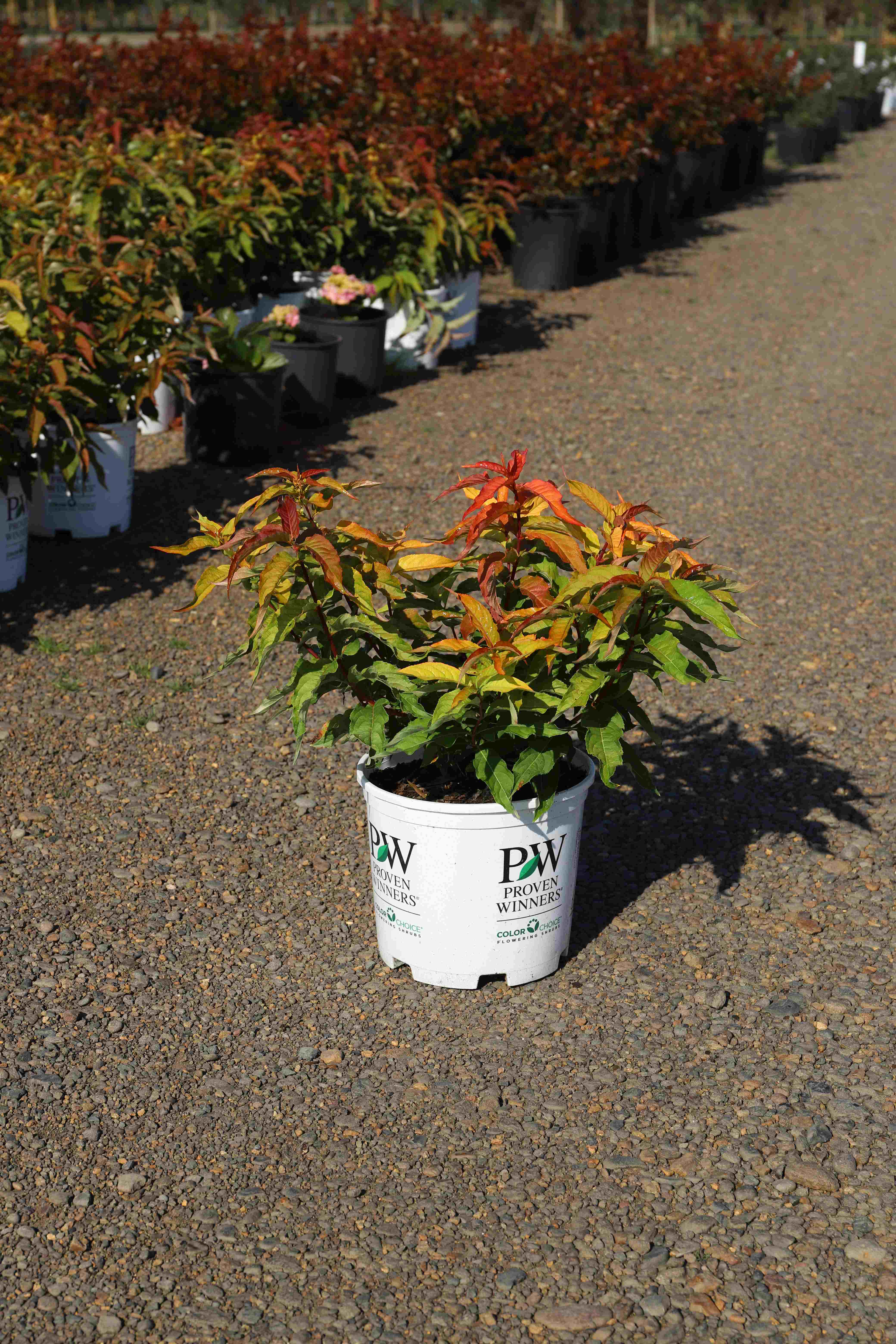 A durable native shrub that will thrive in sun or shade, is drought tolerant and deer resistant. Fall color is a glowing orange red, new growth is orange. Yellow flower clusters occur throughout summer. An easy shrub to grow for the border or mass plantings.