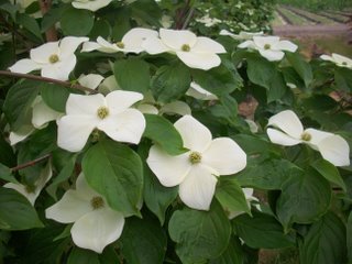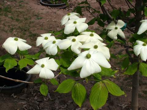 Cornus kousa x nuttallii 'KN4-43', better known as Starlight® Flowering Dogwood, is an upright, densely branched tree with an oval crown. The large, white bracts appear in late spring, about a week before 'Venus'. Strawberry like fruit develops in the fall. It prefers part shade to full sun and well drained, acid soils, rich in organic matter. It is nearly free of insect and diseases. It is one of the Jersey Star® series from Rutgers.
