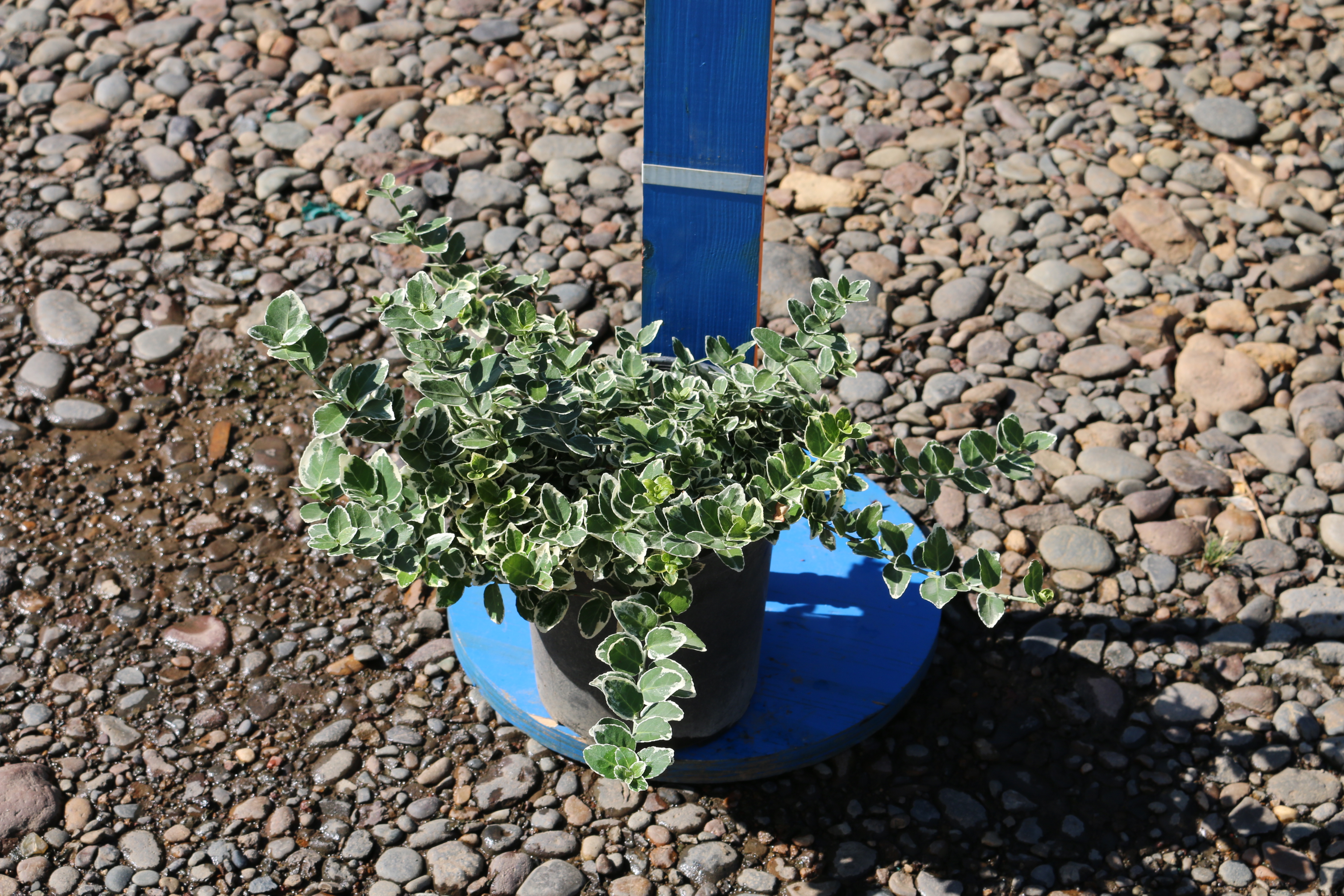 A dense, rounded shrub with emerald-green foliage that is edged with white. In colder weather, pink tints will develop. It is tolerant of all but extremely wet soils. It takes full sun to shade. Use as a low hedge, specimen, or with support, can climb. Prune as needed for form.