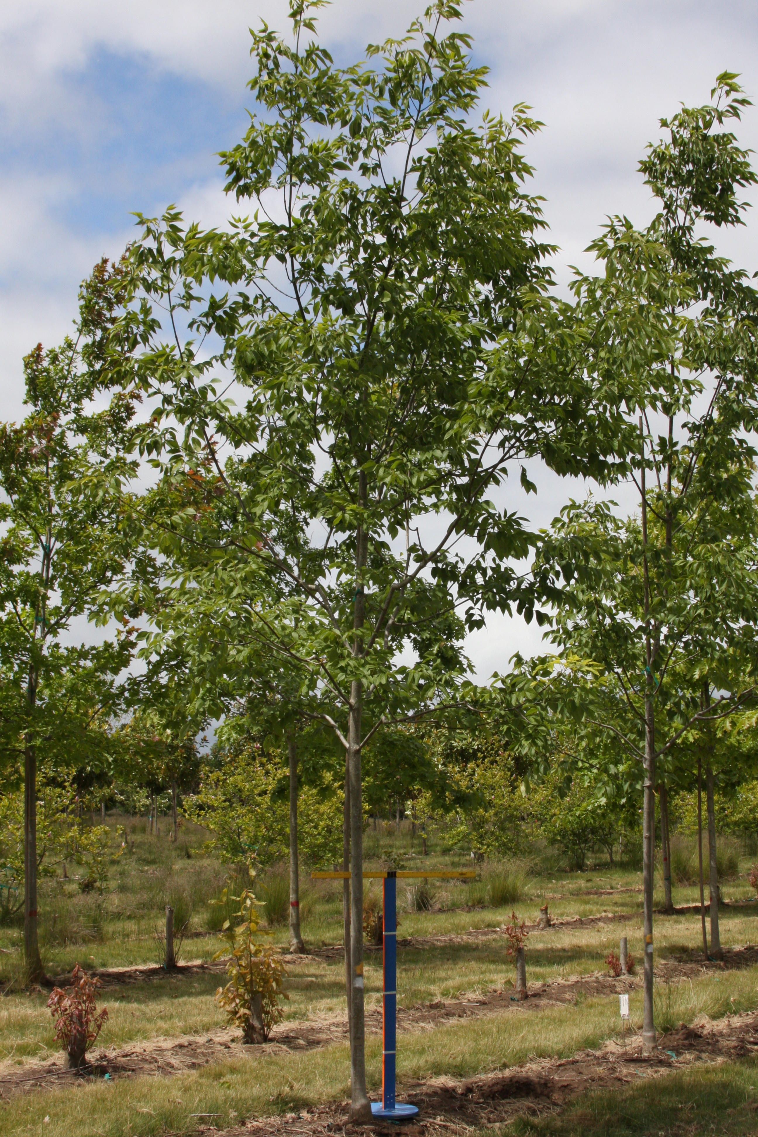 A rounded, upright tree that is fast growing and seedless. The structure is open, not too twiggy. The thick, dark green pinnate leaves turn reddish-purple, with some golden tones later, in the fall. Grows best in full sun in a moist, well-drained soil. It is frequently used as a shade or street tree.