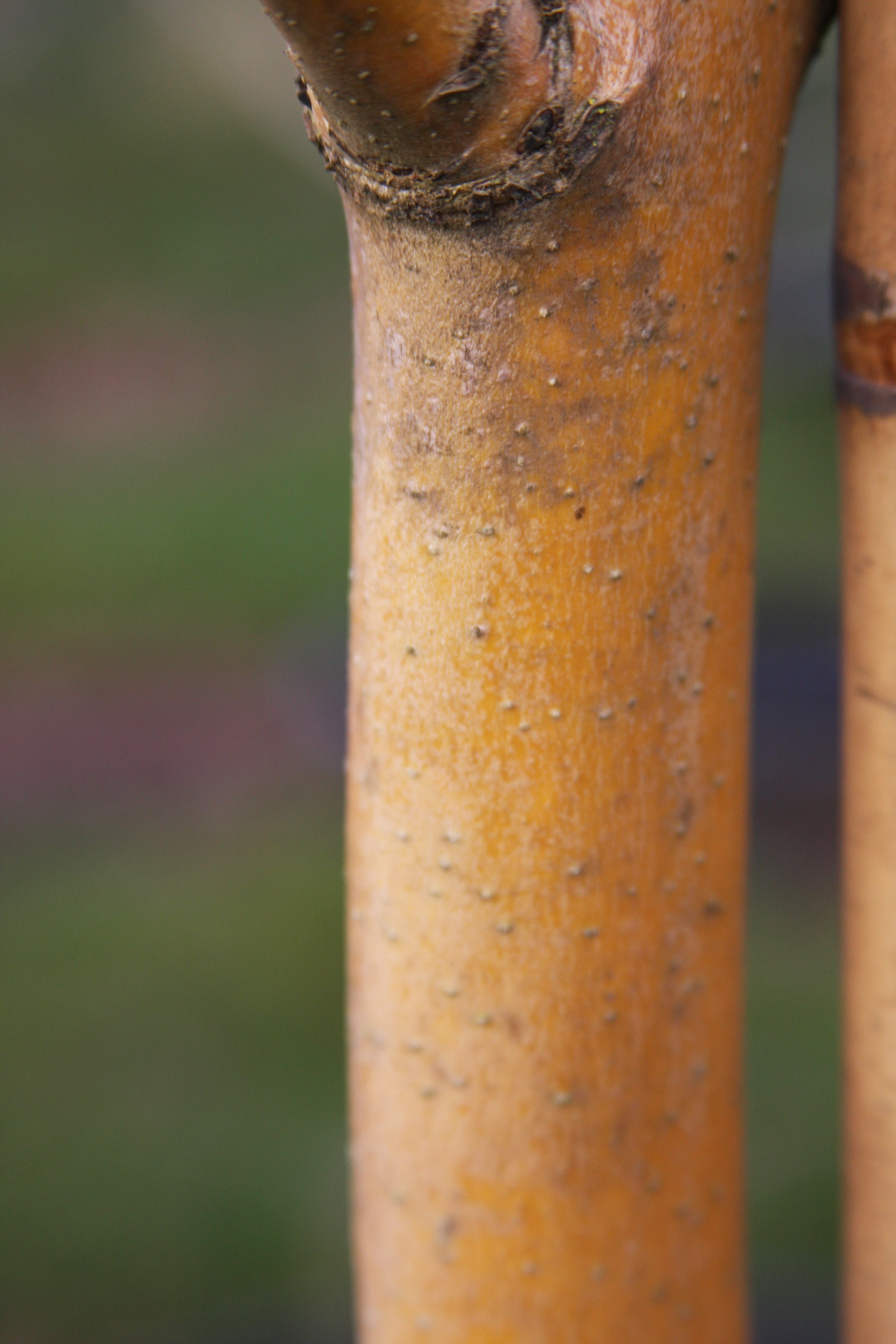 A small, rounded tree with golden branches throughout the year. Foliage is bright golden in the spring, yellow green in the summer, and bright gold in the fall. In winter, the buds are dark brown, contrasting nicely with the bark. It grows best in full sun or part shade and average, well-drained soil. The small size makes it useful for a tight space, under power lines, or wherever their colorful bark may be enjoyed.