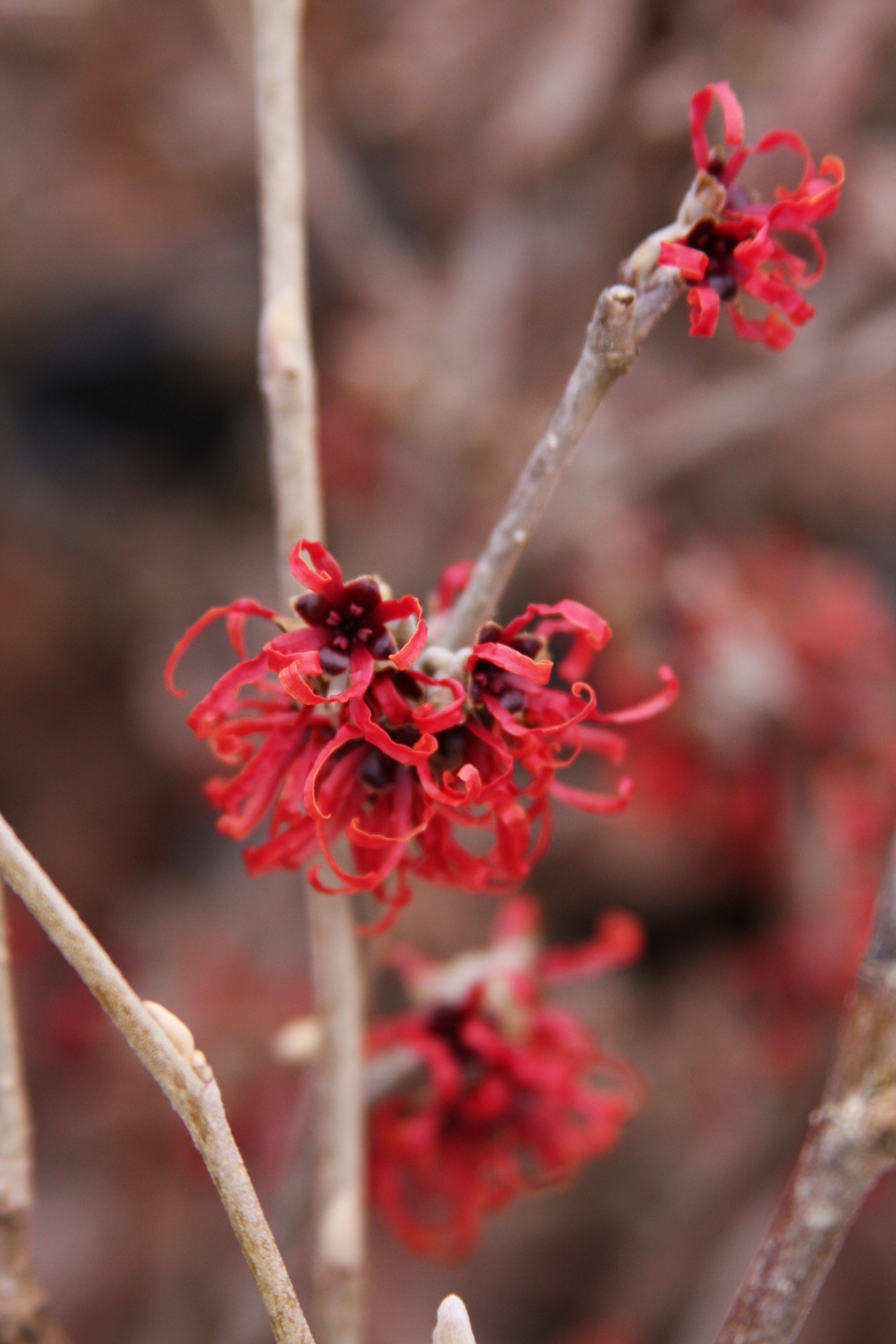 Hamamelis is a genus of plants known for strap-like winter flowers and fall color. Many of the cultivars and species have fragrant flowers, a real treat on a dreary day in winter. The plants are relatively trouble free. They prefer a site that is well drained in full sun to part shade. Their preferred soil is acidic and organically rich. Prune the plants in the spring after they flower as needed to control shape and size. They can be planted in shrub borders, in woodland gardens, used as a screen or tall hedge. They make a good specimen where the winter flowers and fall color can be enjoyed.