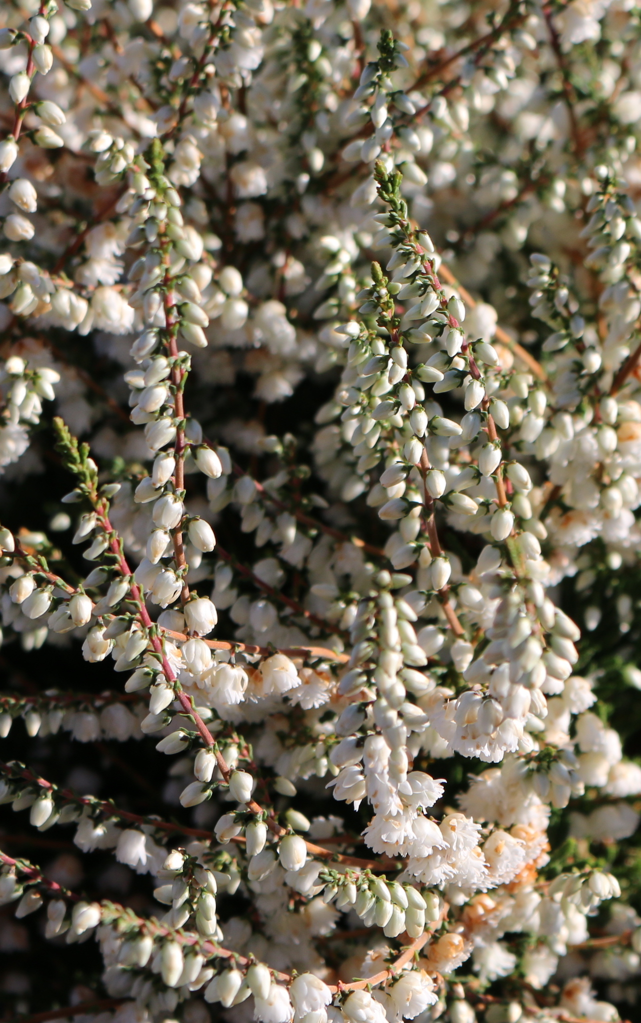 Calluna and Erica offer year round interest. During the winter, the foliage on many selections turns to bright colors. They are wonderful planted in mass, along with grasses, perennials or conifers. The flowers appear in different seasons, depending on the variety.