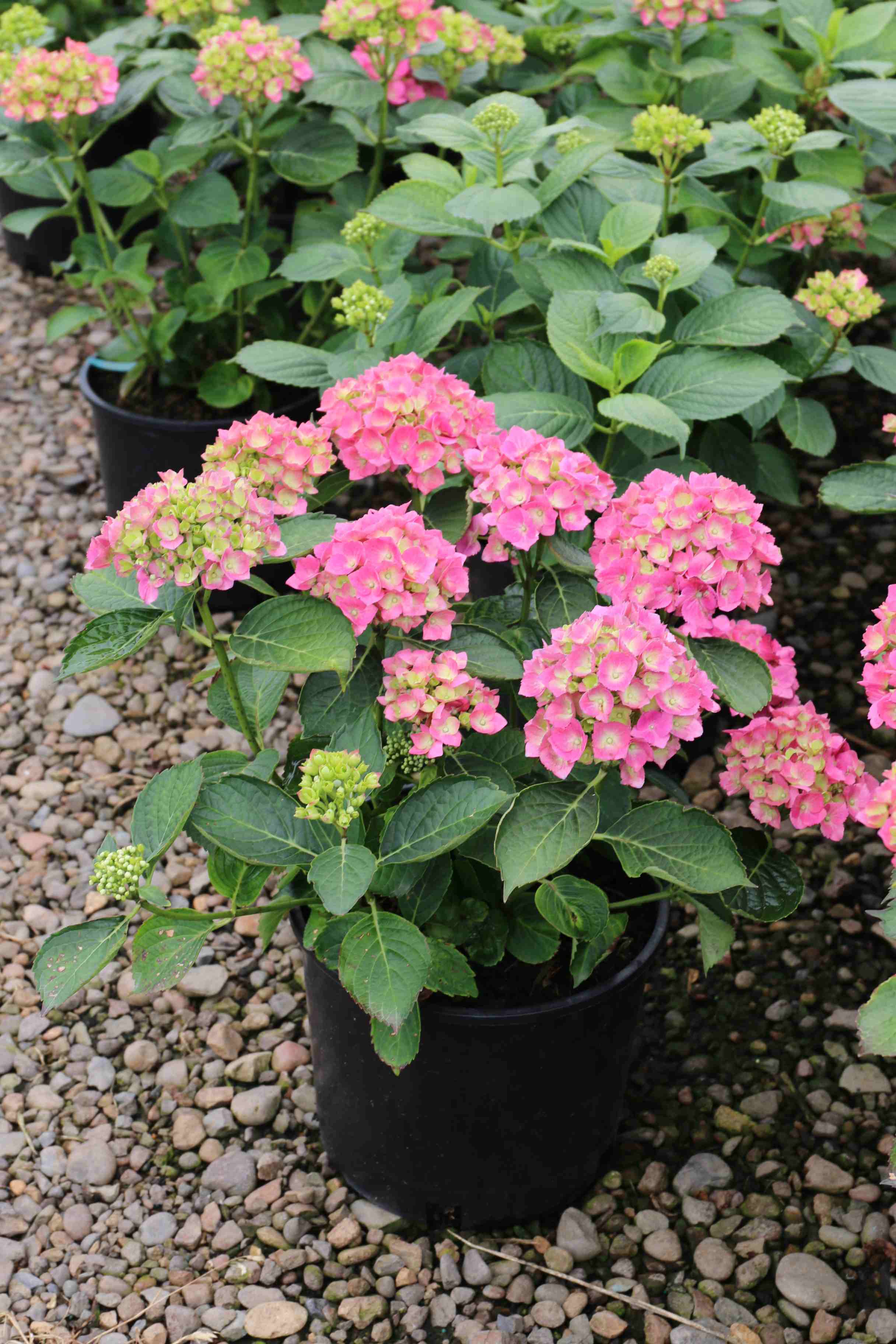 A compact, rounded shrub that has blue, purple, and pink blooms all at the same time. This hydrangea is a strong rebloomer for extended summer color. It prefers full sun to partial shade, in a moist, well drained soil. PP26,249.