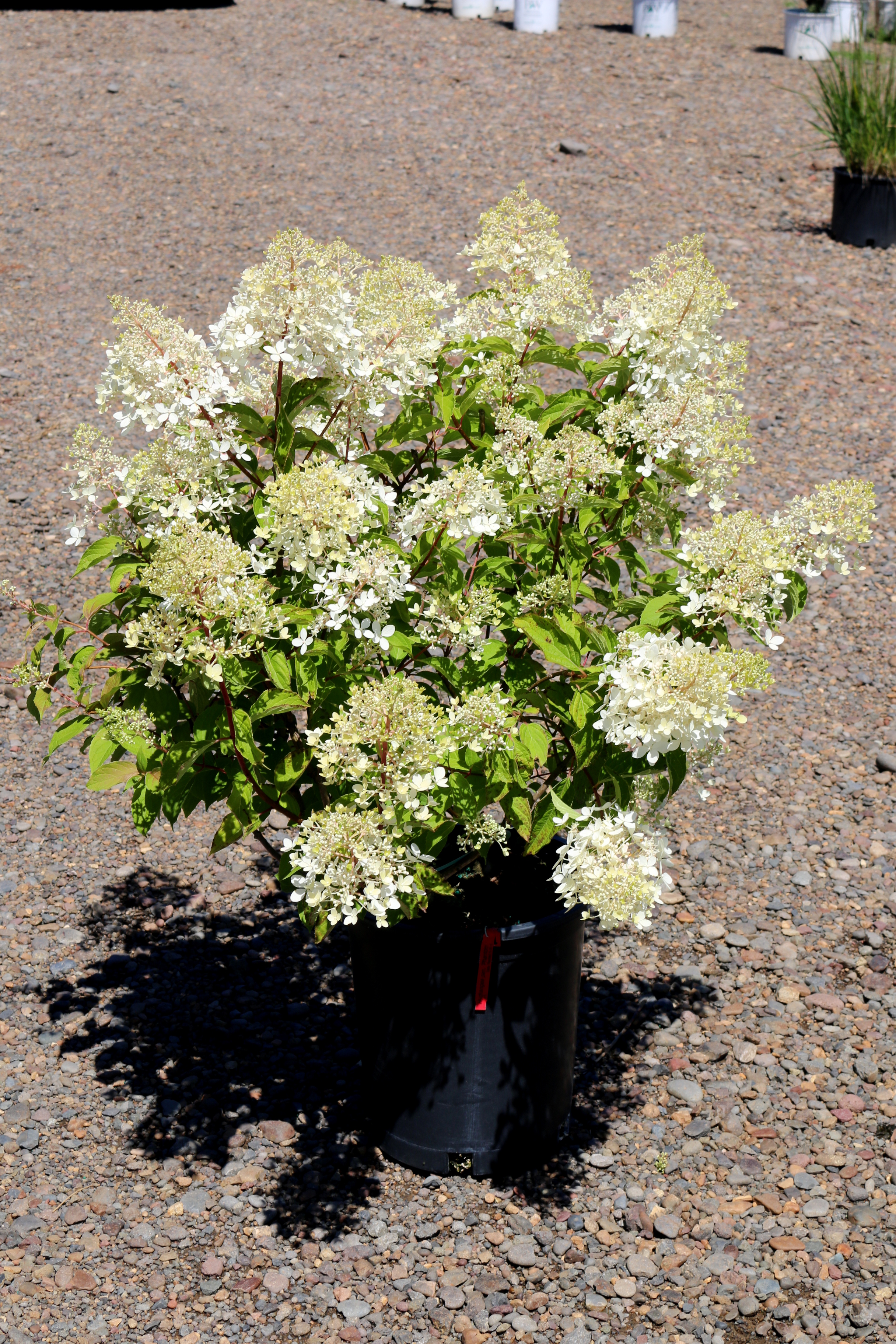An upright, spreading, coarse textured shrub. Extra-large, creamy-white mid-summer flower panicles become pink with age and are possibly the fullest flower heads of the paniculata selections. The branches are stout, and support the large blooms. Fall color is yellow. It grows best in full sun in a moist, well-drained soil. The blooms occur on current season's growth so prune accordingly. Grown as a shrub and as a standard.