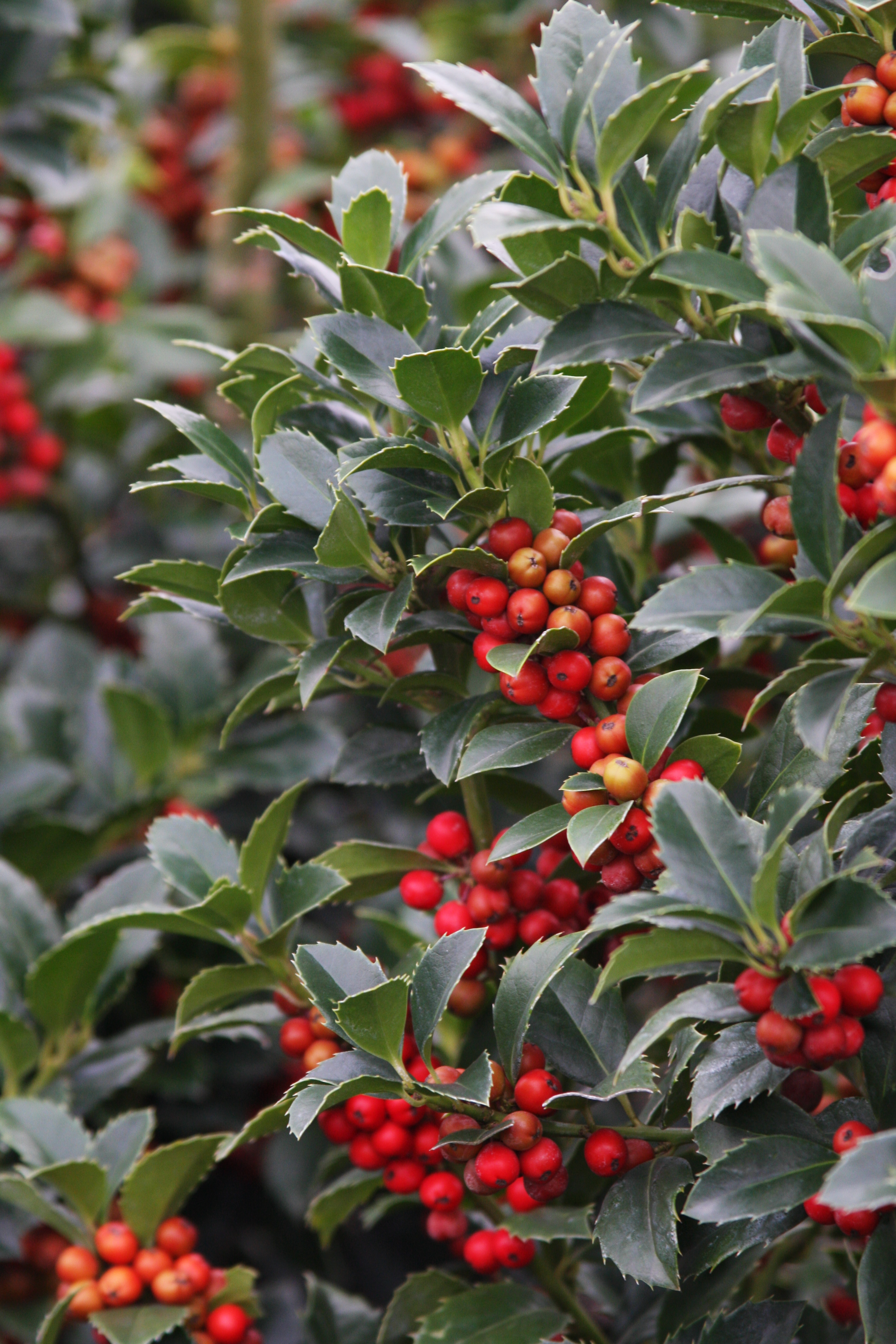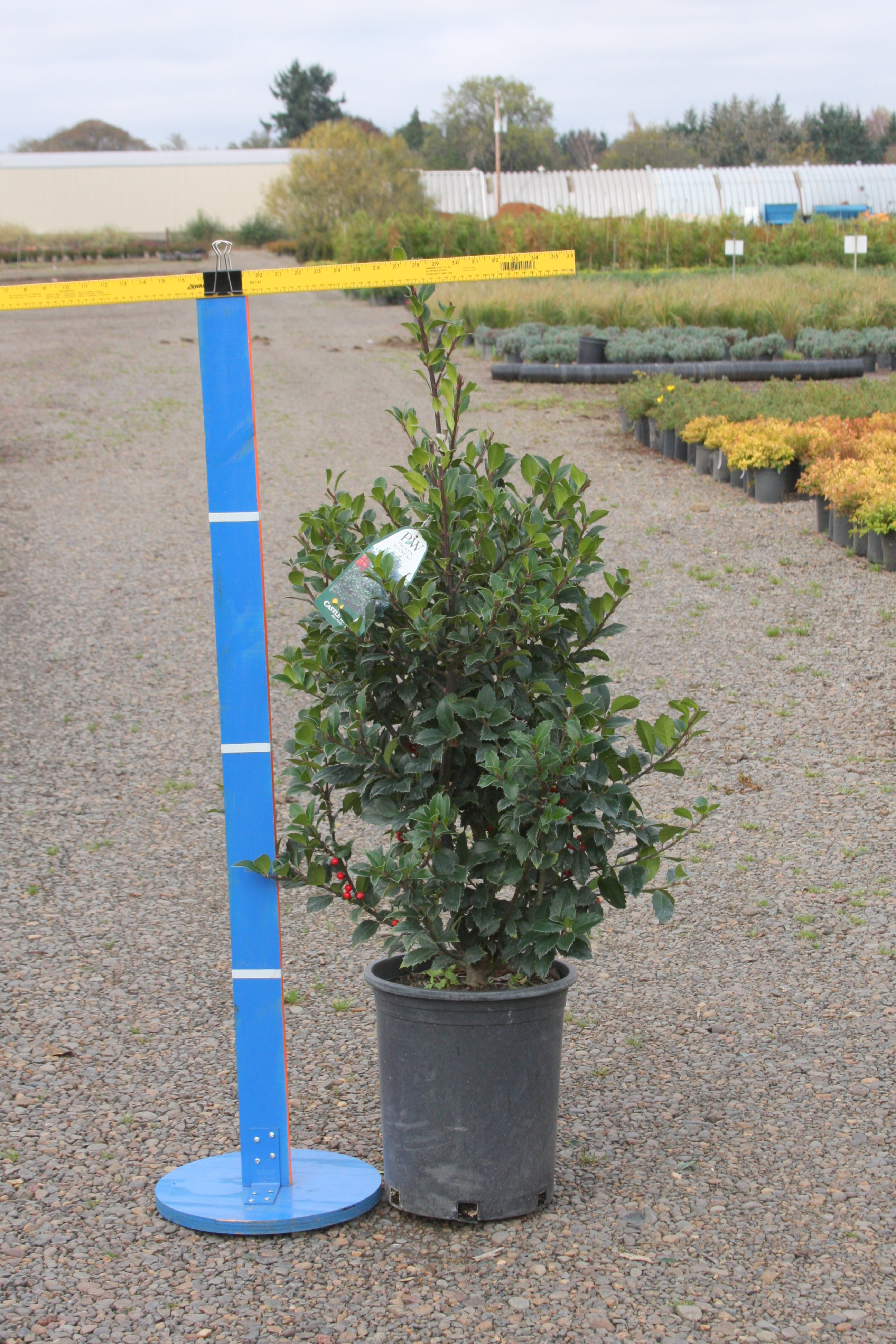 A compact pyramidal evergreen holly. The foliage is glossy and dark green. It produces bright red berries from late summer through winter. It needs a pollinizer such as 'Castle Wall'. Prefers full sun to part shade in a well-drained soil. Can be pruned if needed. Great for specimen or hedge plantings. PP 14,310.