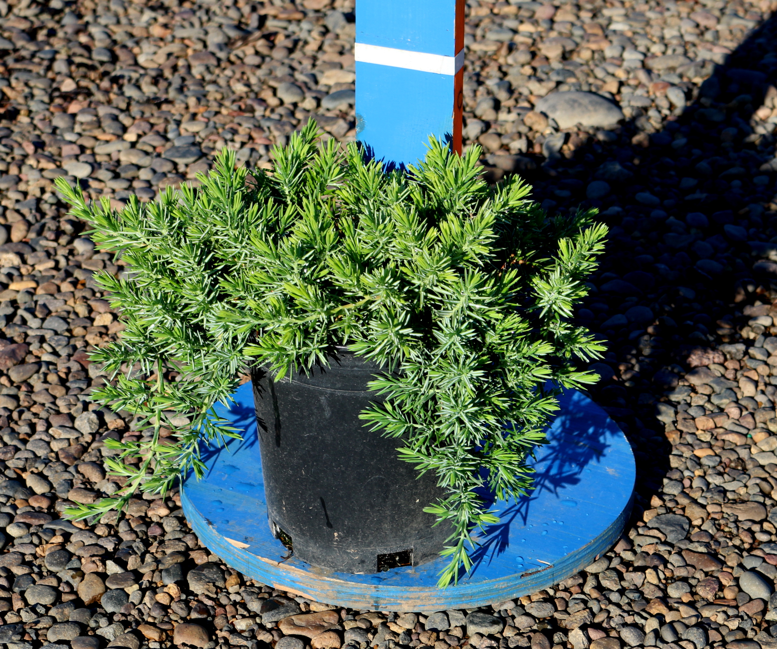 A low, trailing groundcover with attractive, blue-green foliage. The habit is compact with superior foliage to the species. It is especially adapted to sandy coastal soils. It prefers full sun and a well-drained soil is essential. Useful low maintenance ground cover, it can trail over a bank, and is great in mass plantings.