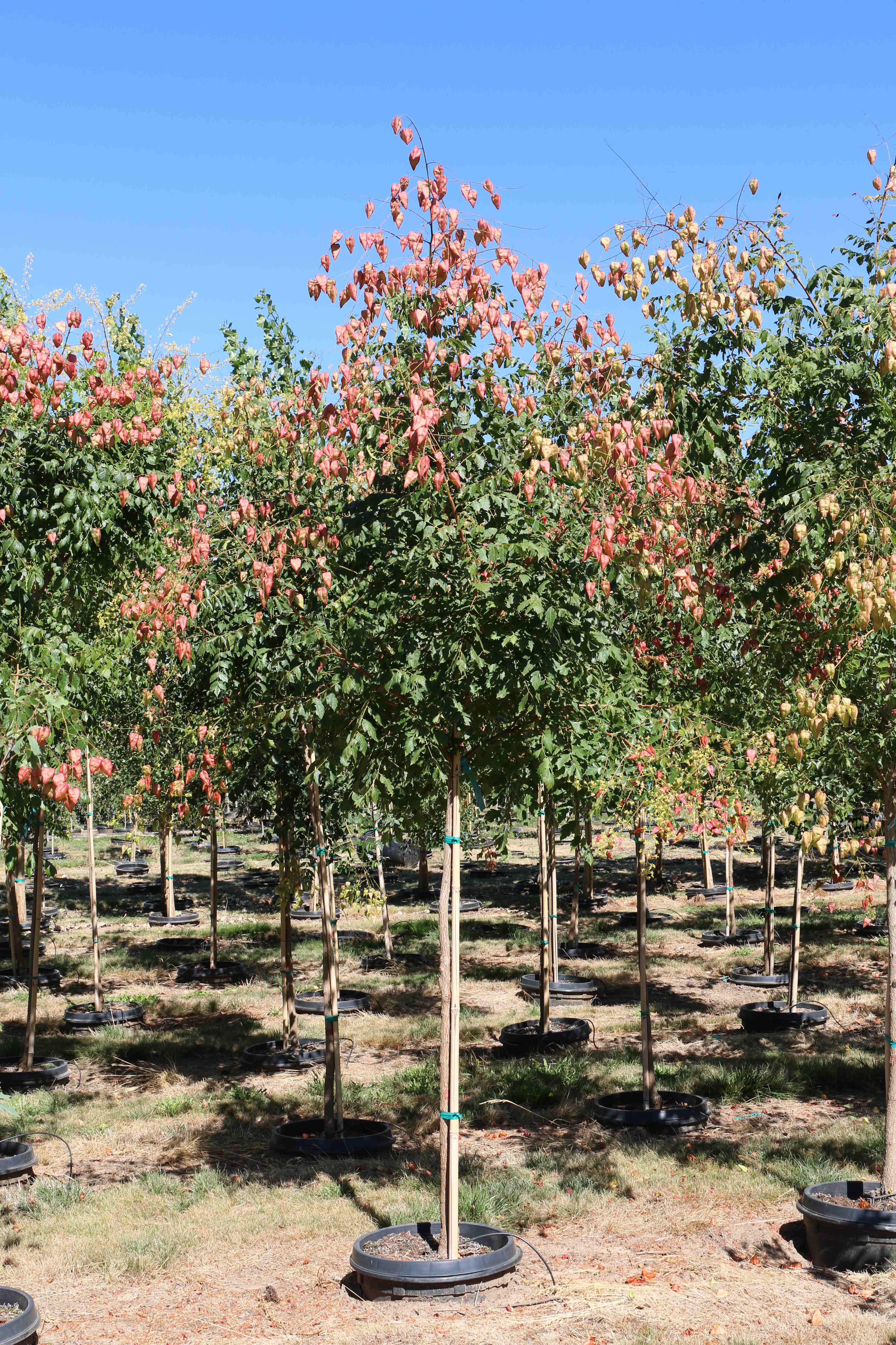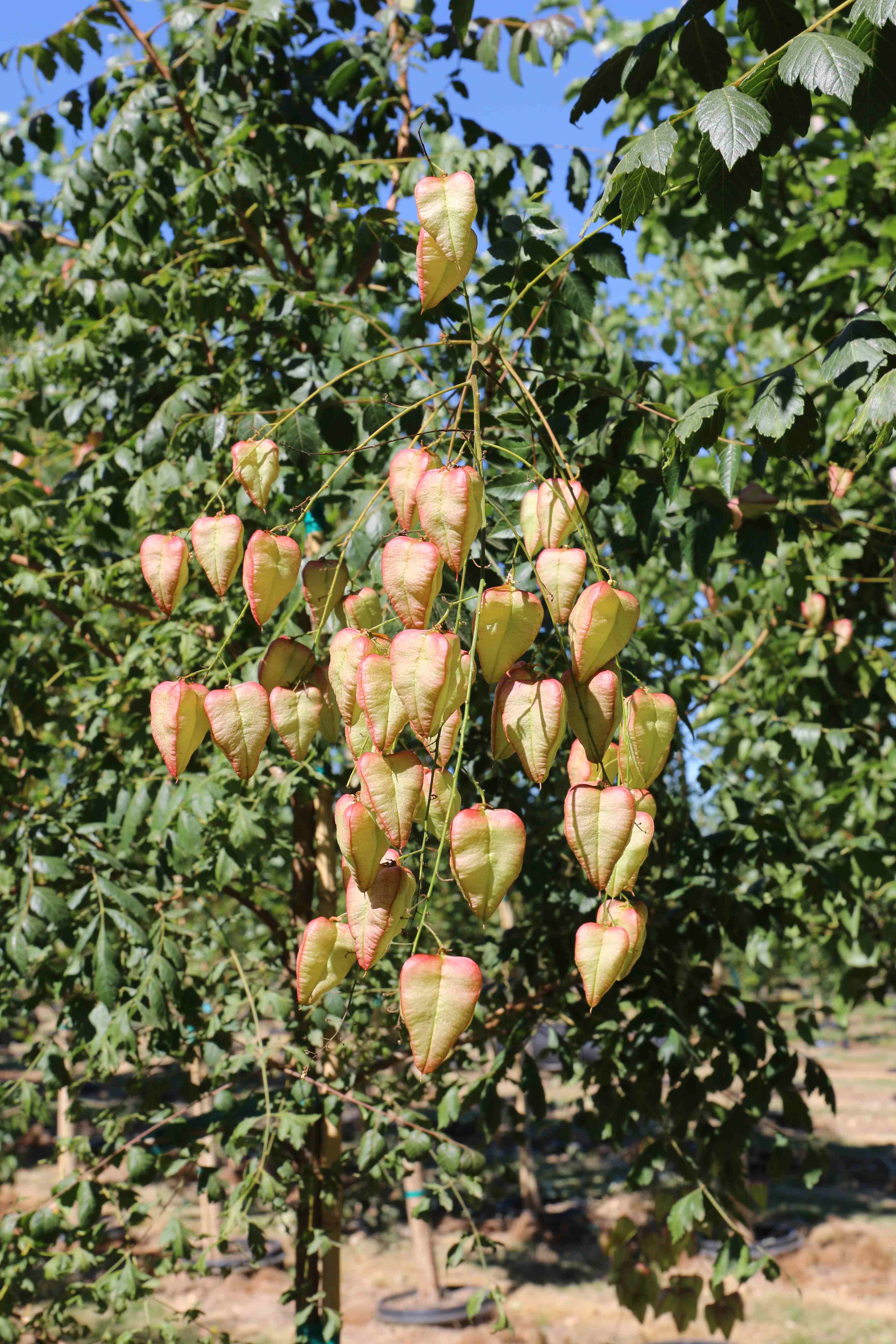 A dense, rounded tree, with open irregular structure. The bright yellow flowers appear in mid-summer. The flowers are followed by inflated papery seed capsules that resemble lanterns. It is very adaptable to poor soils and adverse environments. It prefers full sun; a well-drained soil is essential. Use as a small shade or street tree.