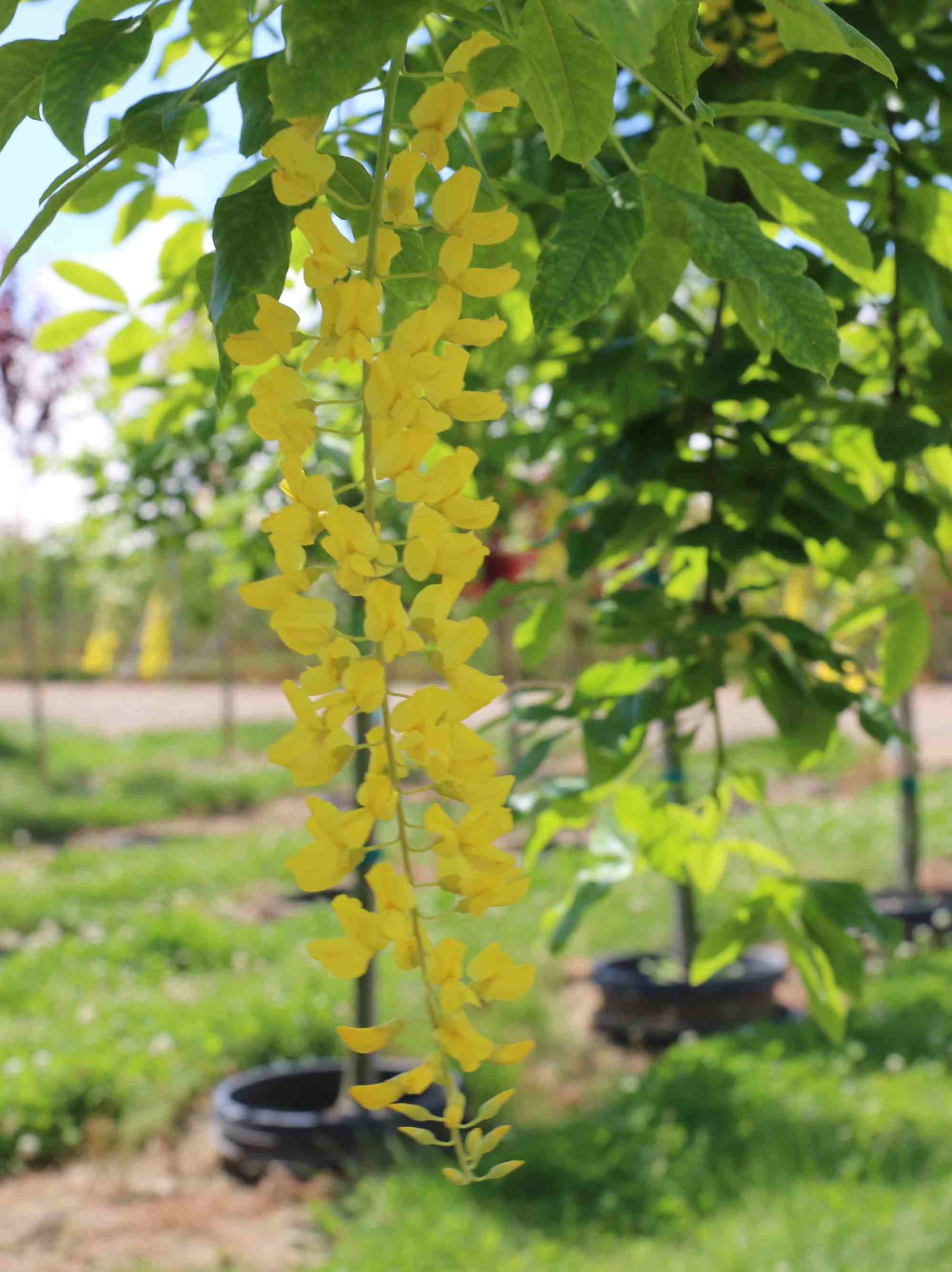 A weeping form of L. x watereri 'Vossi' with long, drooping branches. The tree is covered with pendulous racemes of bright yellow flowers in the late spring. The summer color is light to mid green, with yellow fall color. It grows best in full sun to part shade in a rich, medium moisture, well-drained soil. Use as a small specimen tree, allowing space for the form to be admired.