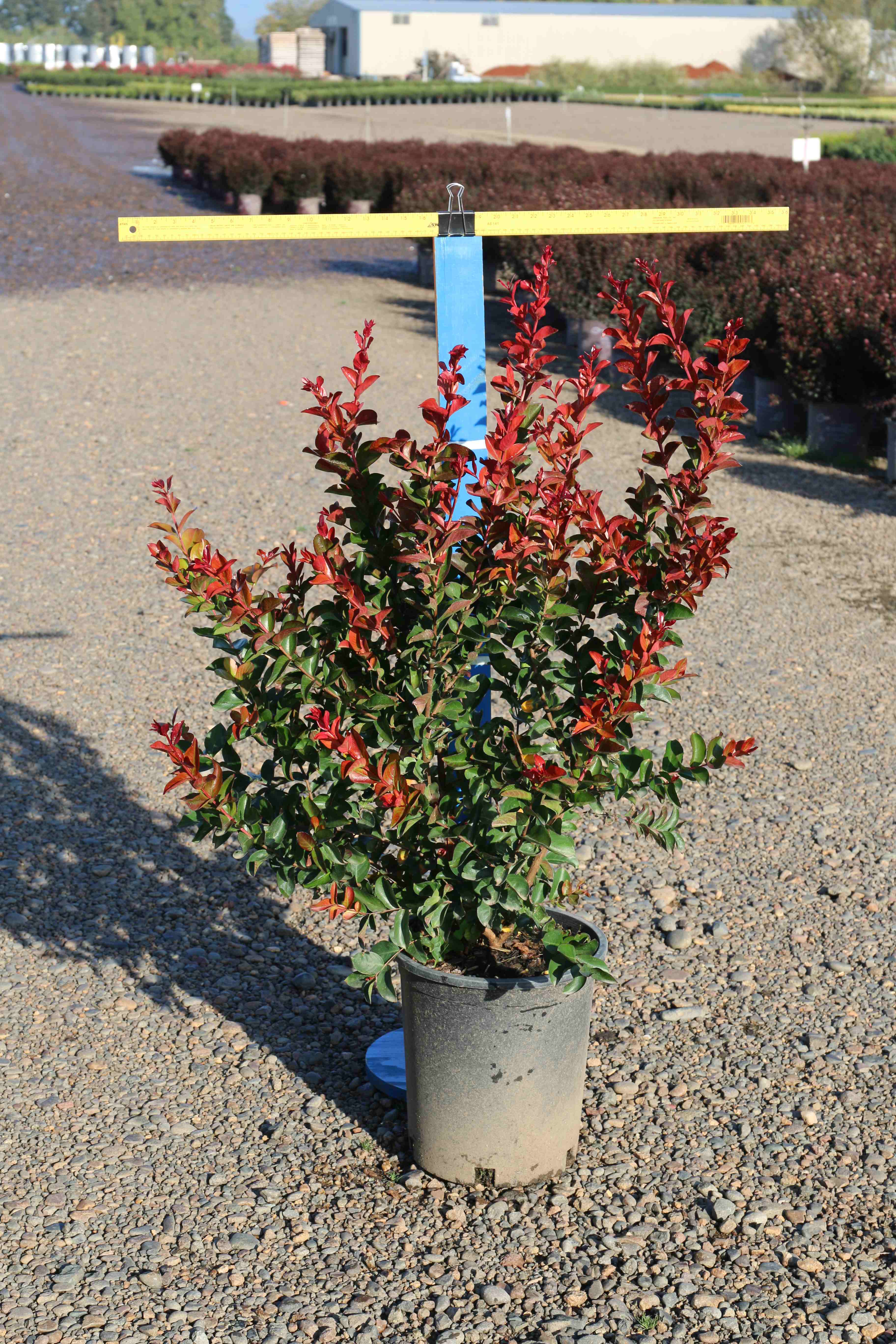 A large shrub or small tree with cherry red flowers held on 6-10" panicles from July thru September. Spring foliage emerges reddish, maturing to dark green with red fall color. it grows best in full sun and most well-drained soils. It is drought tolerant once established. Use as a specimen or in groups. PP 10,296.