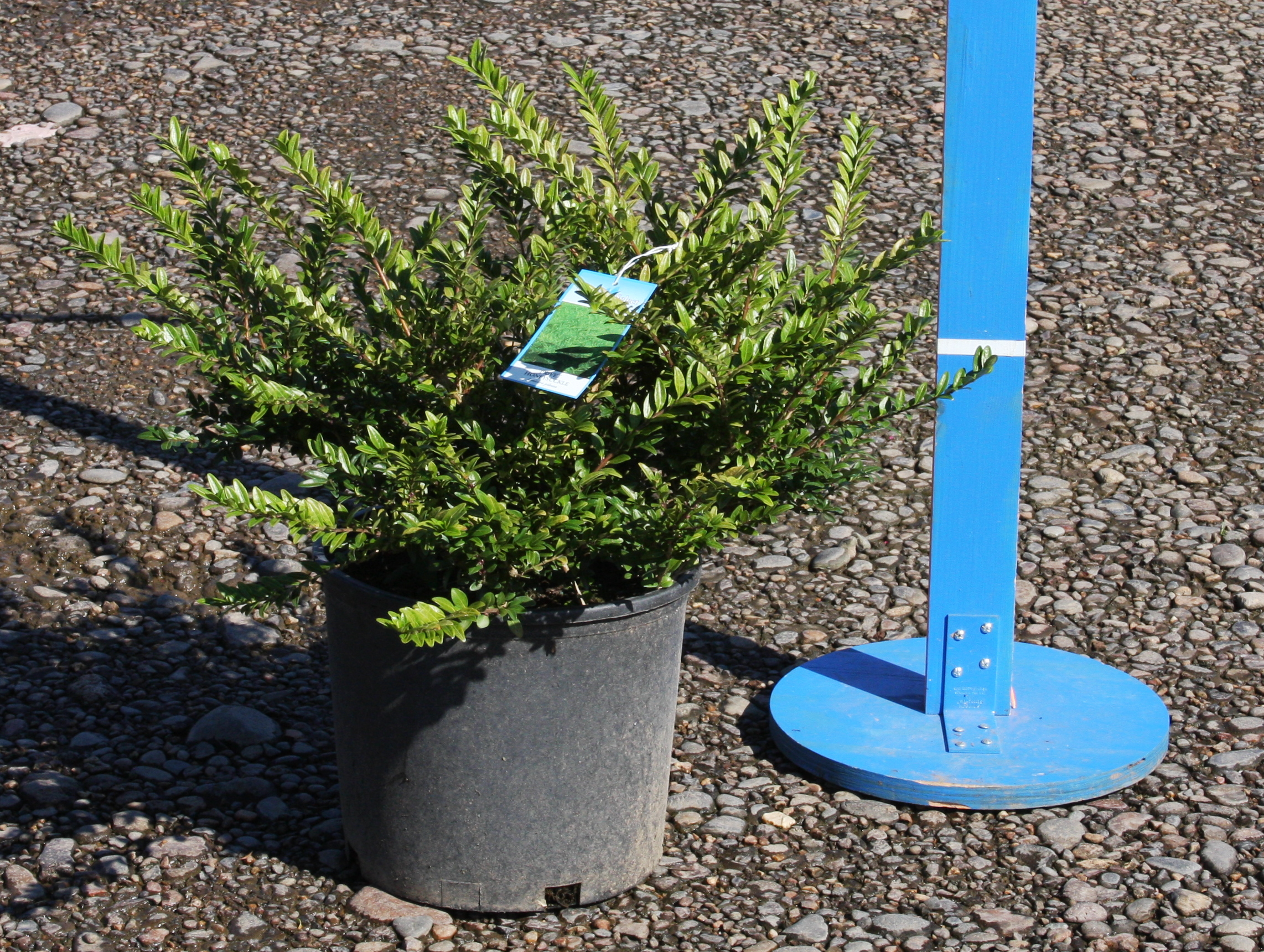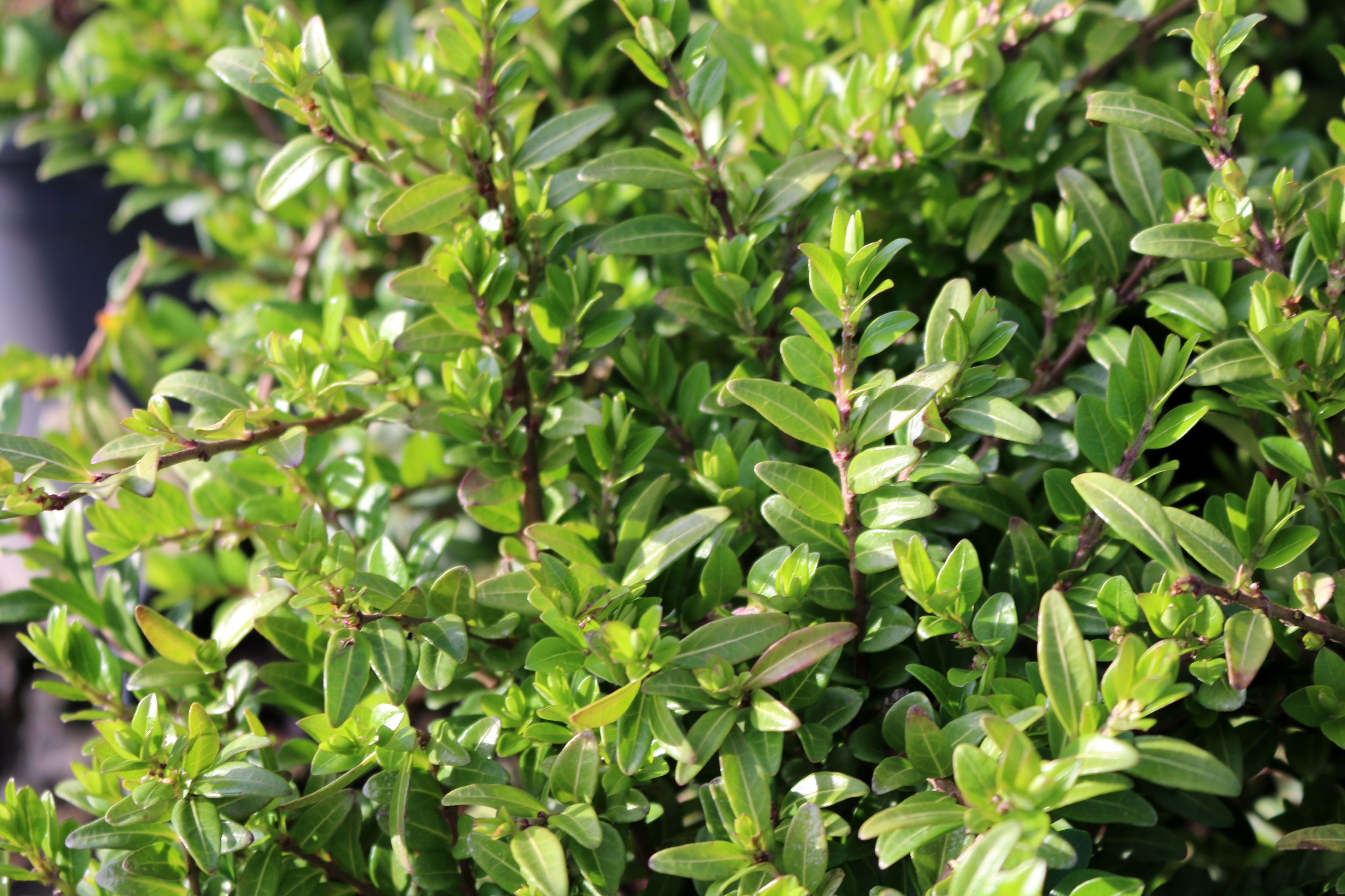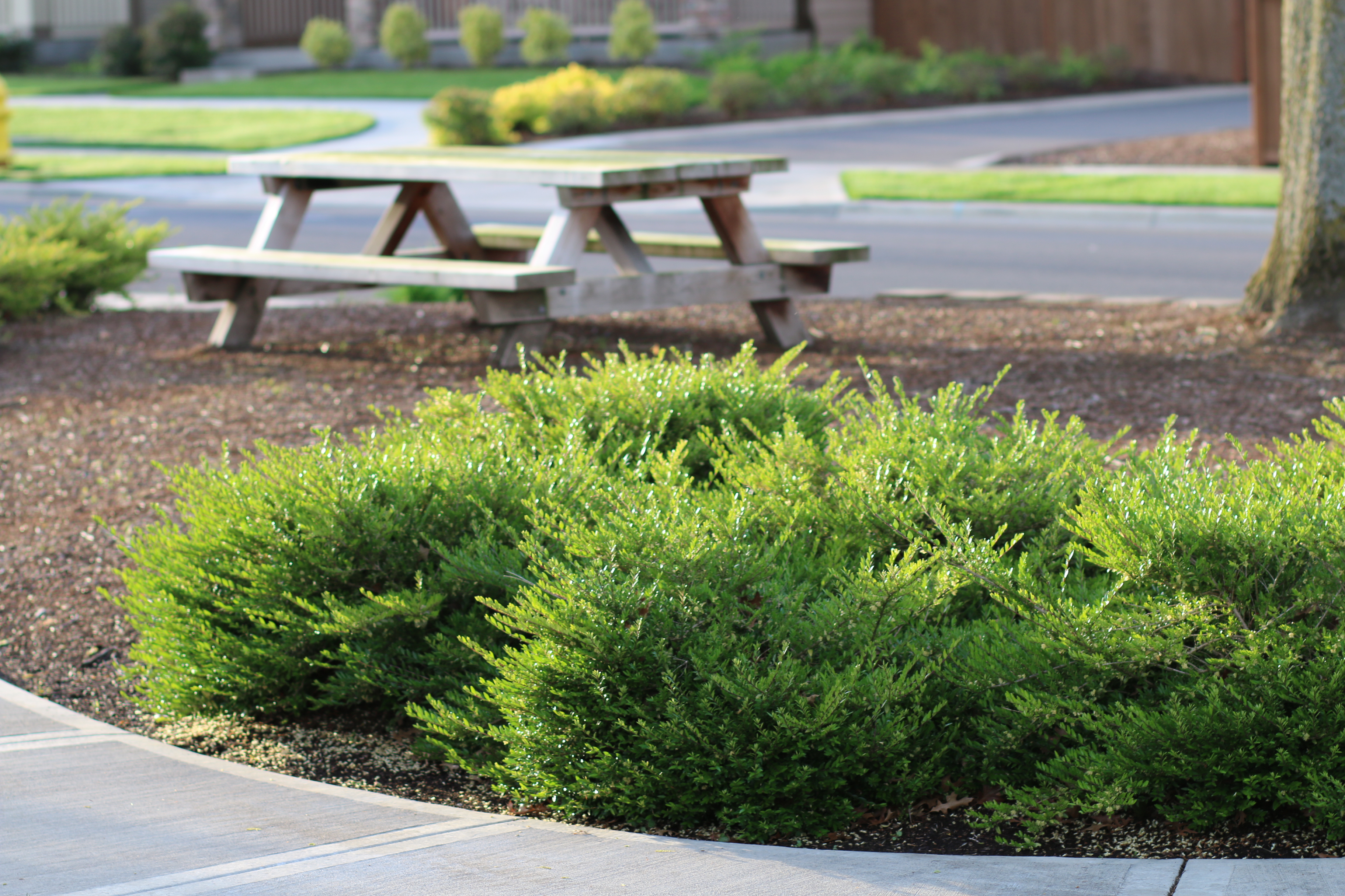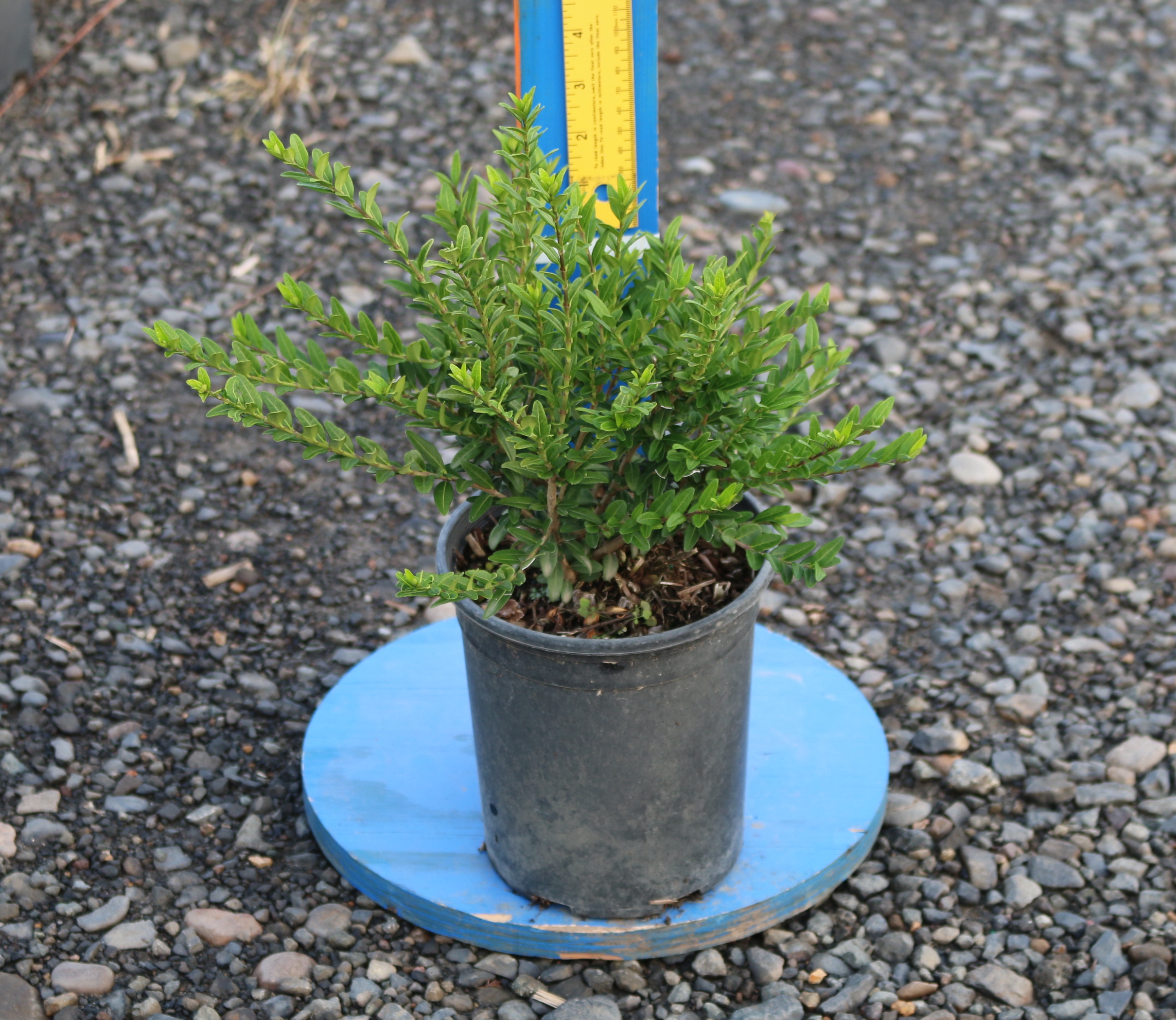 A low spreading, horizontal branching evergreen shrub with small glossy green leaves. Small, fragrant, creamy-white funnel-shaped flowers in spring are followed by violet-blue berries. It takes full sun or partial shade and is drought tolerant once established. It responds well to pruning if needed. Useful for mass planting or ground cover.