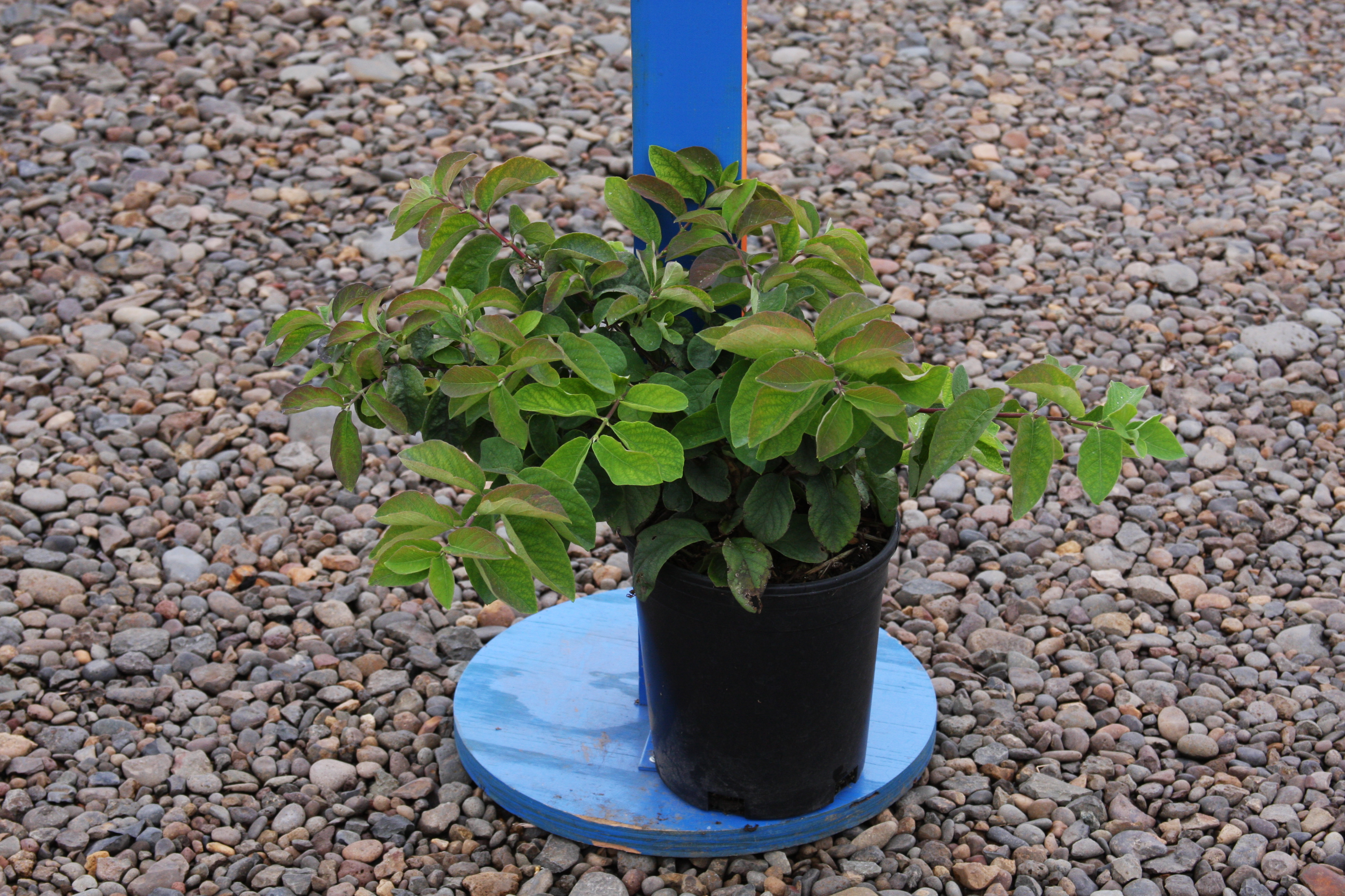 A low-growing, mounded shrub with blue-green foliage. The yellow-white flowers are followed by red berries. Useful in groups or for an irregular, low hedge. It prefers moist, loamy soils, full sun to part shade. Use as a low hedge or foundation planting.