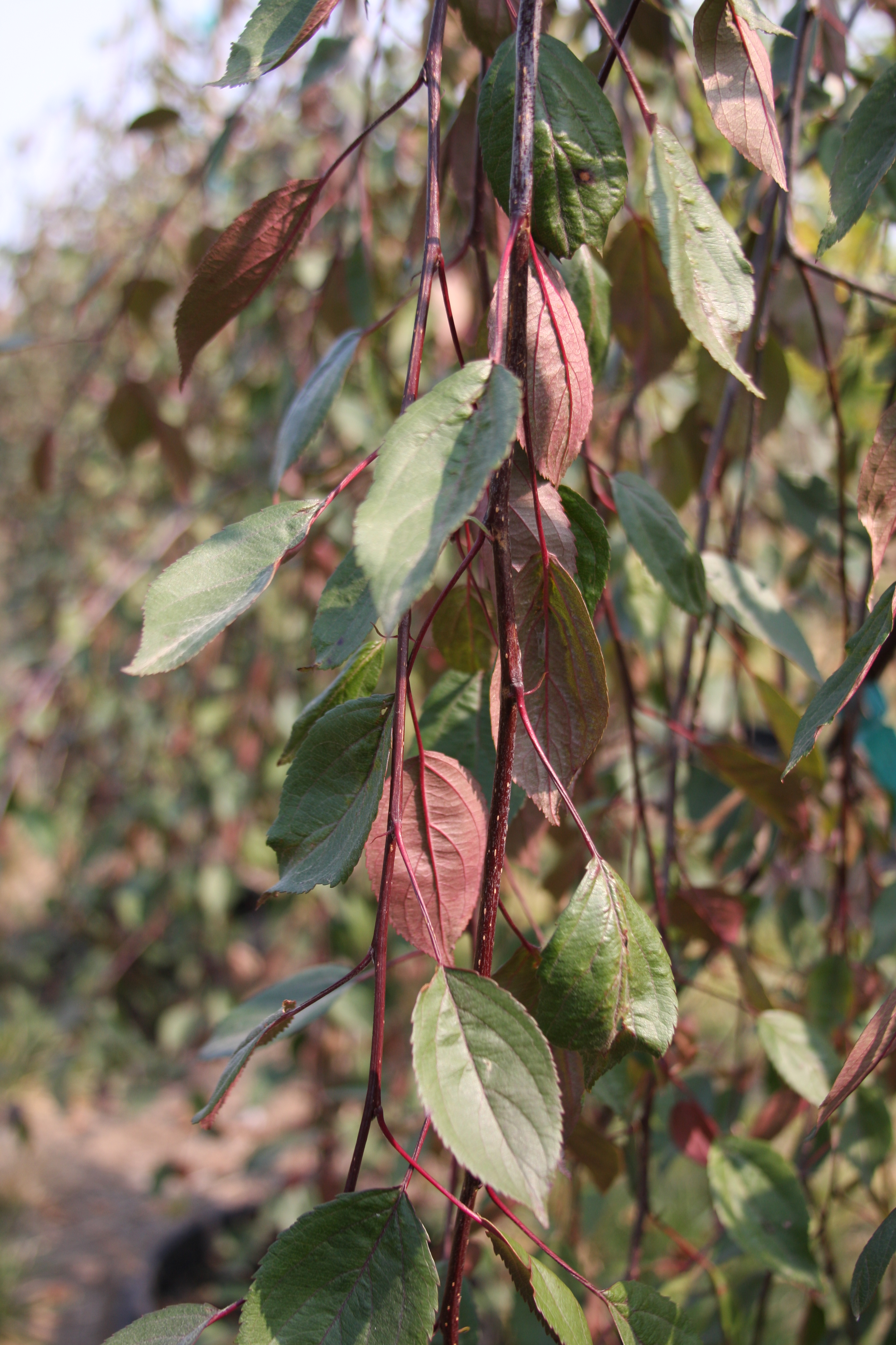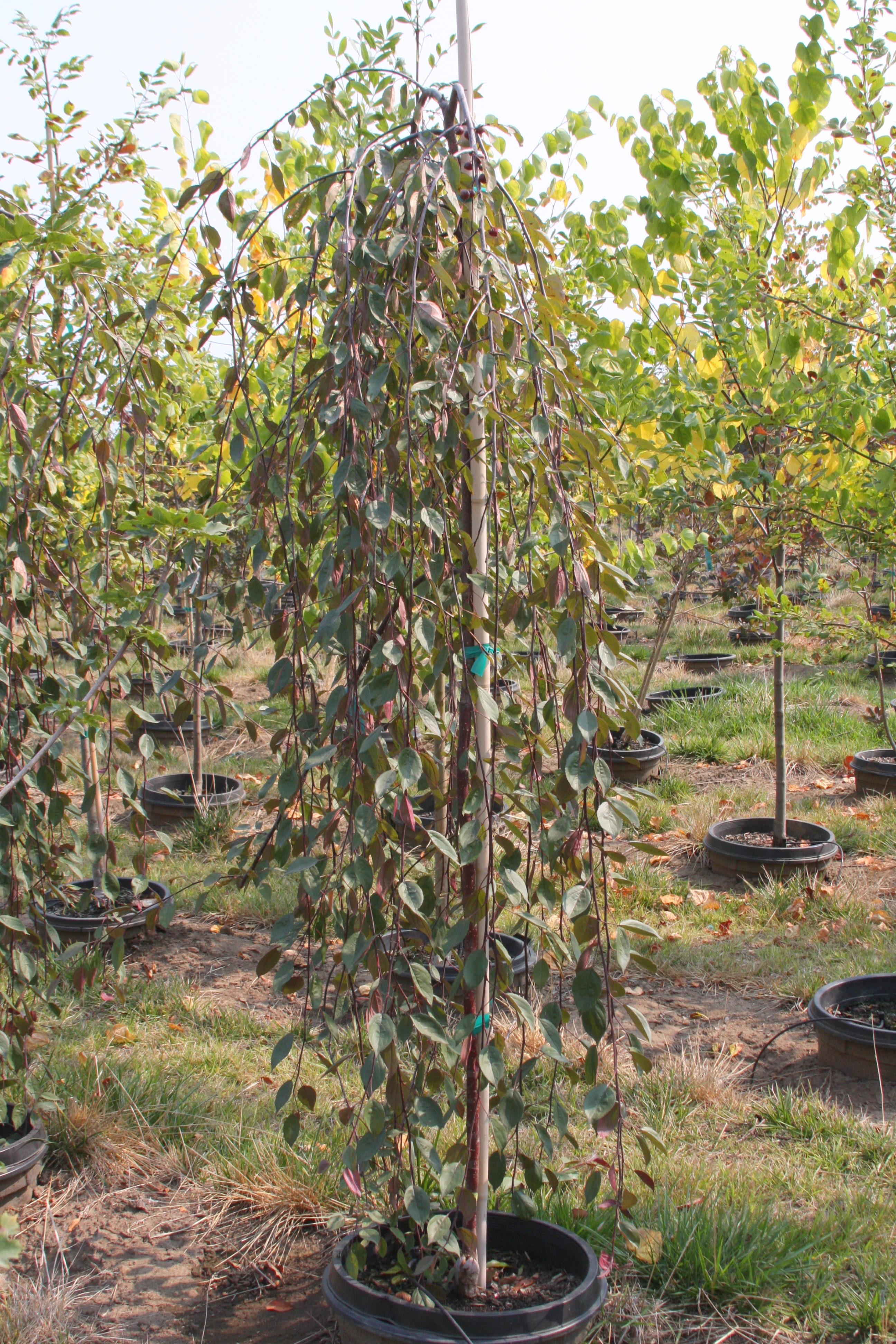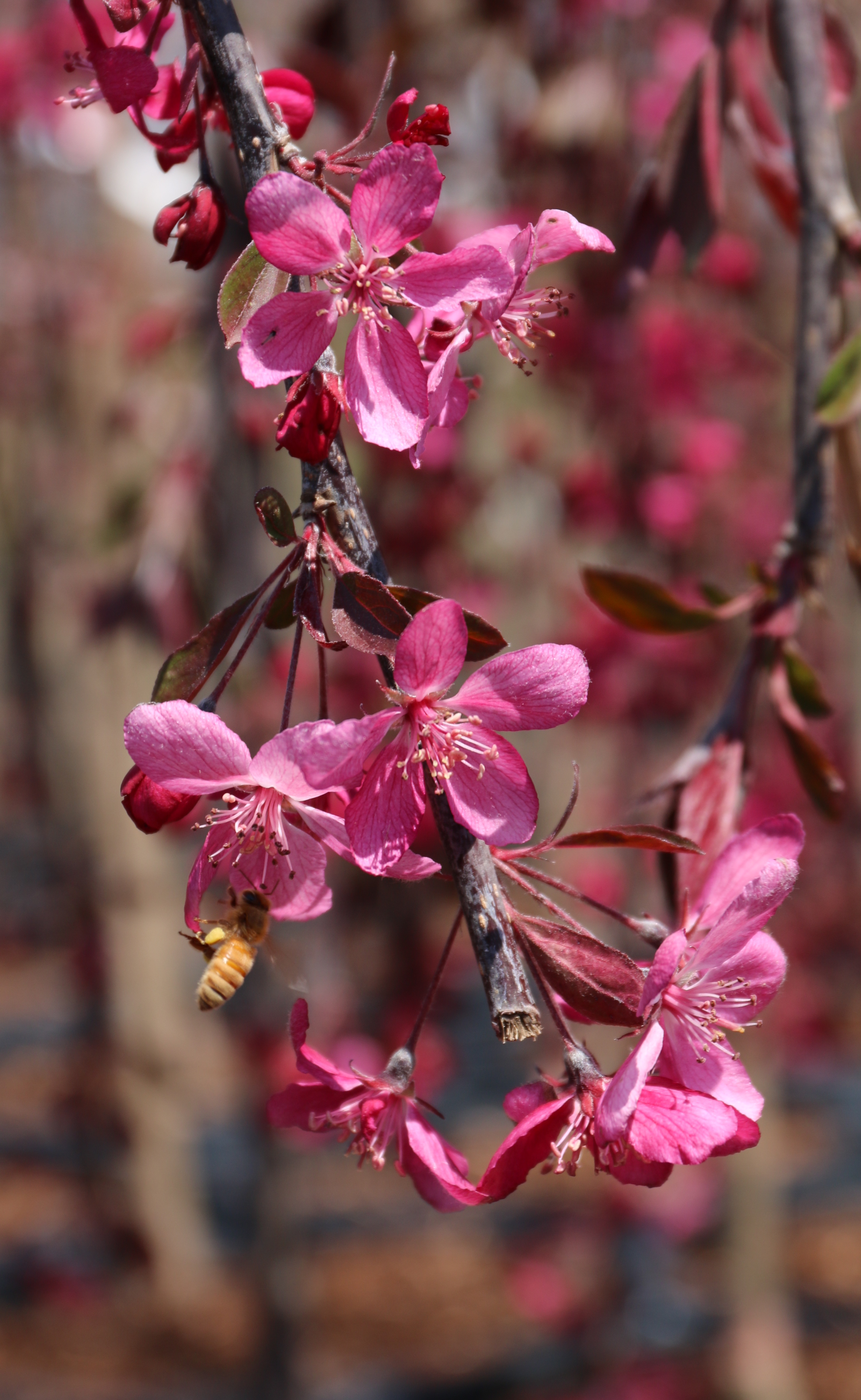 A small weeping tree with rich reddish-bronze leaves. The underside of the leaf remains purple. The fall color takes on orange and bronze tones. The deep reddish-pink flowers in spring are followed by dark red fruit. It has excellent disease resistance. As with most Crabapples, it will grow best in full sun in a well-drained soil. This would make a lovely addition in the landscape as an accent or focal point.