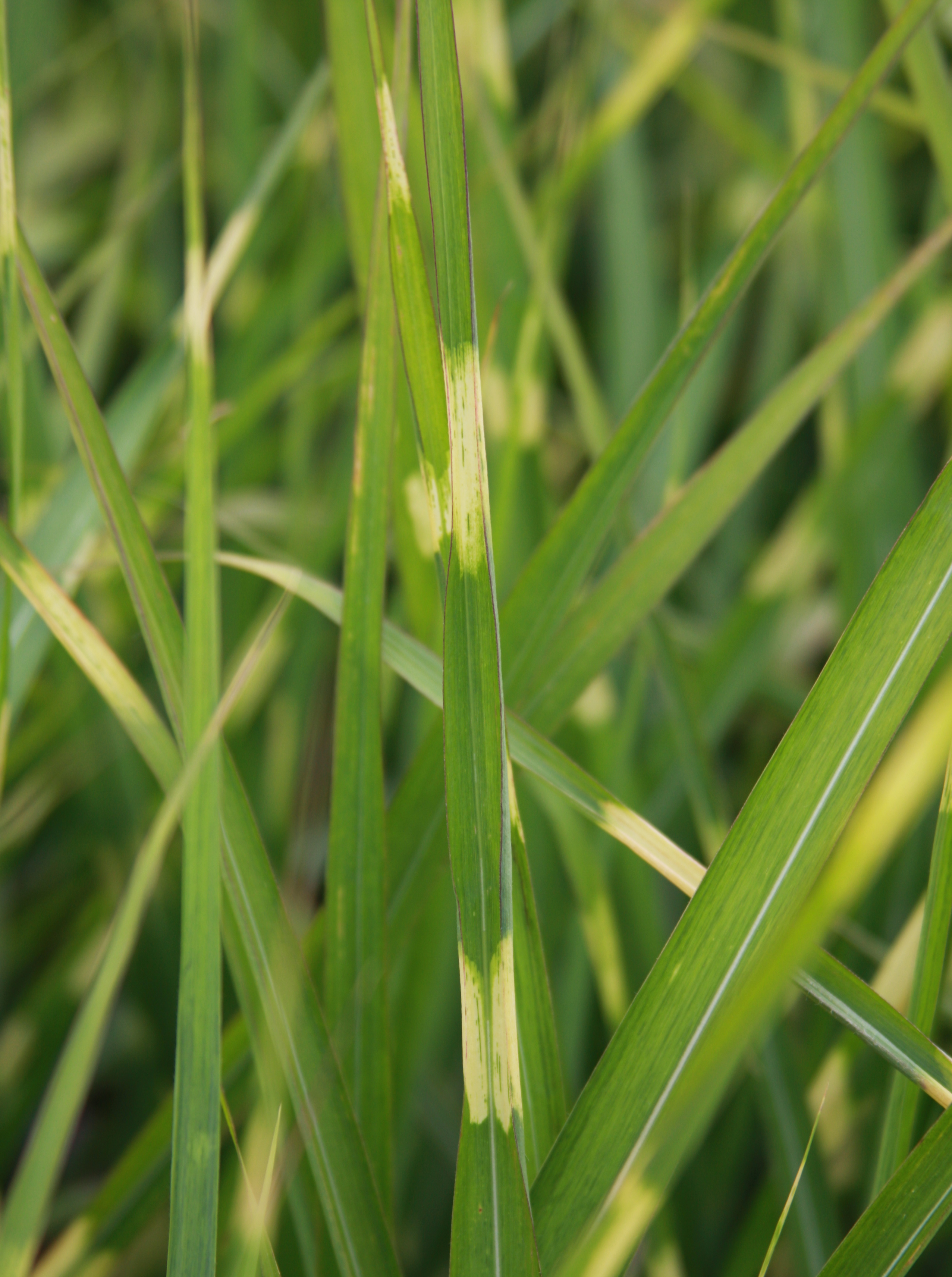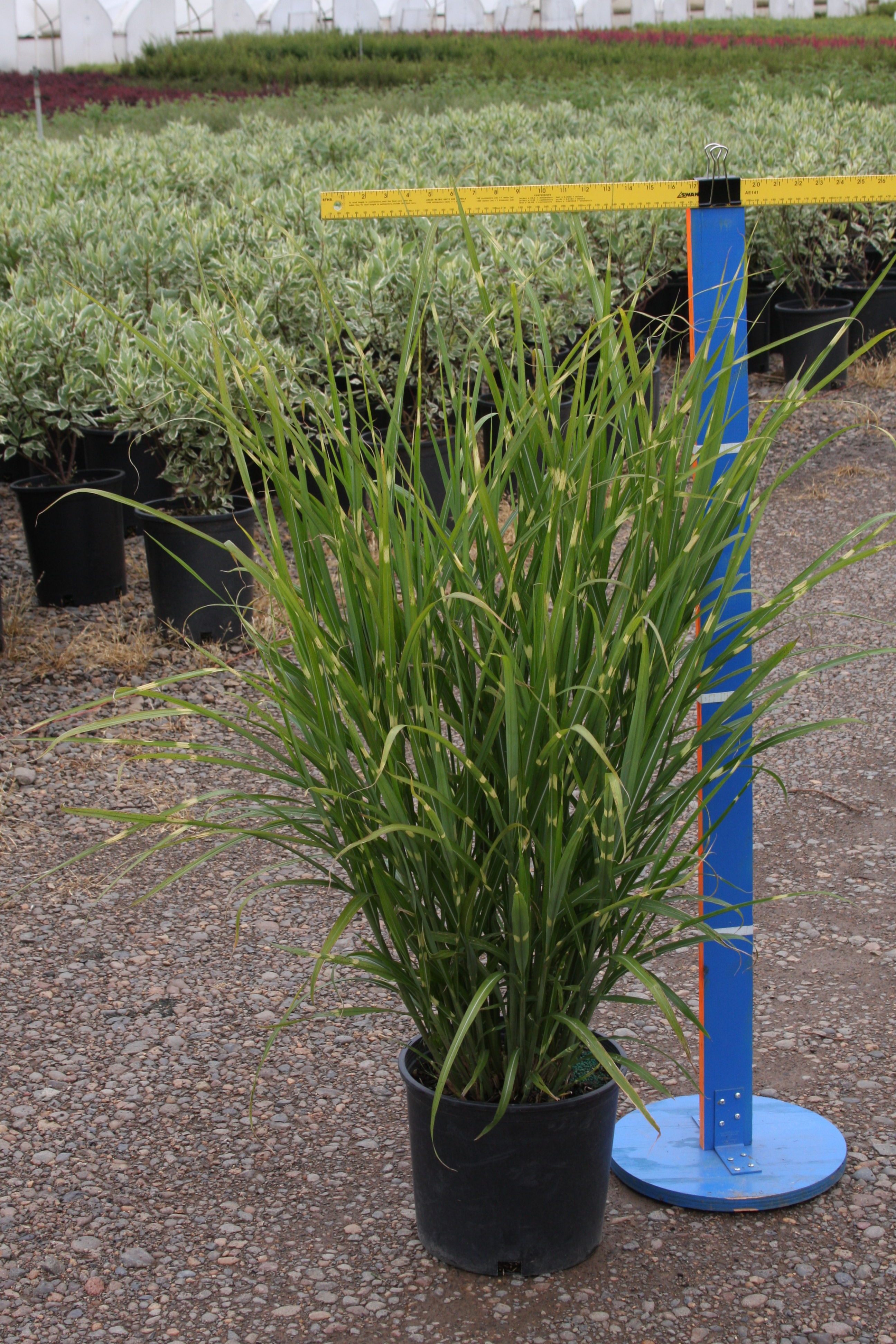 A stiffly upright grass with wide green leaves that have horizontal yellow stripes. The copper flowers appear in September. It forms clumps which can be divided in spring before new growth appears. It is easily grown in full sun to part shade in an average, well-drained soil. Cut the old foliage to the ground in late winter, just before the new growth emerges.