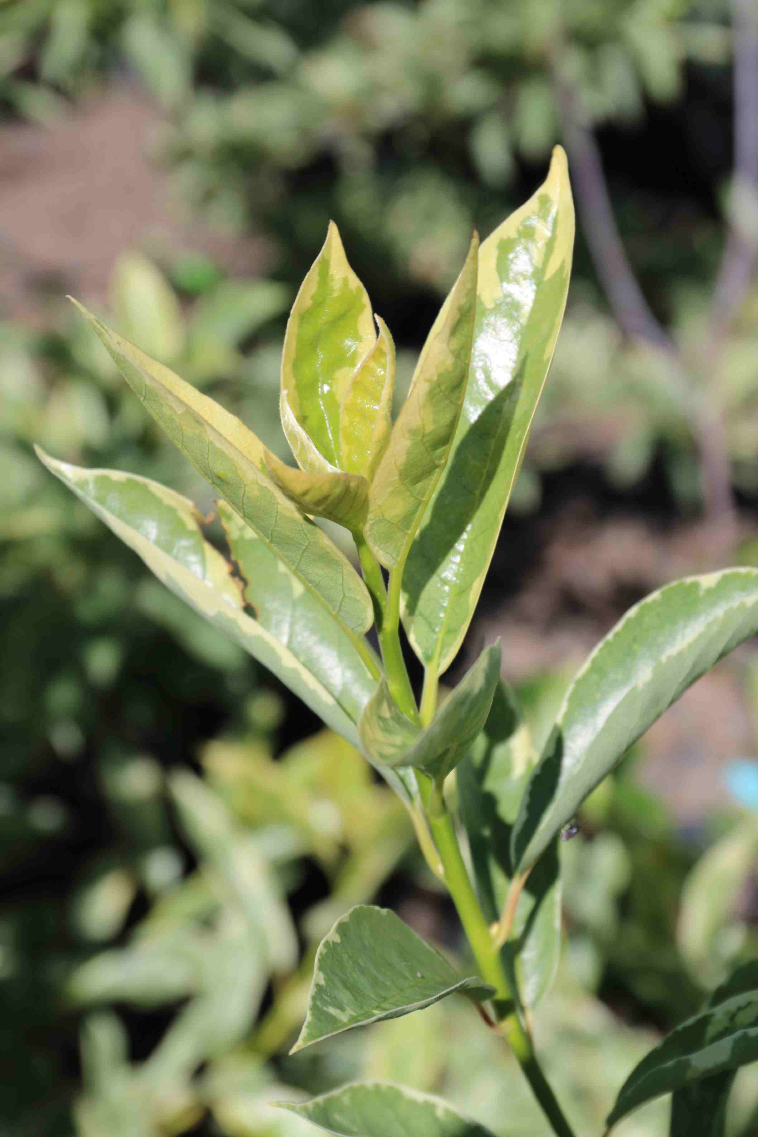 A medium sized tree with green leaves that have creamy white variegation. The leaves color to pink and bright red in the fall. It is native to eastern North America and is tolerant of wet soils and salts. It was discovered in Arkansas.