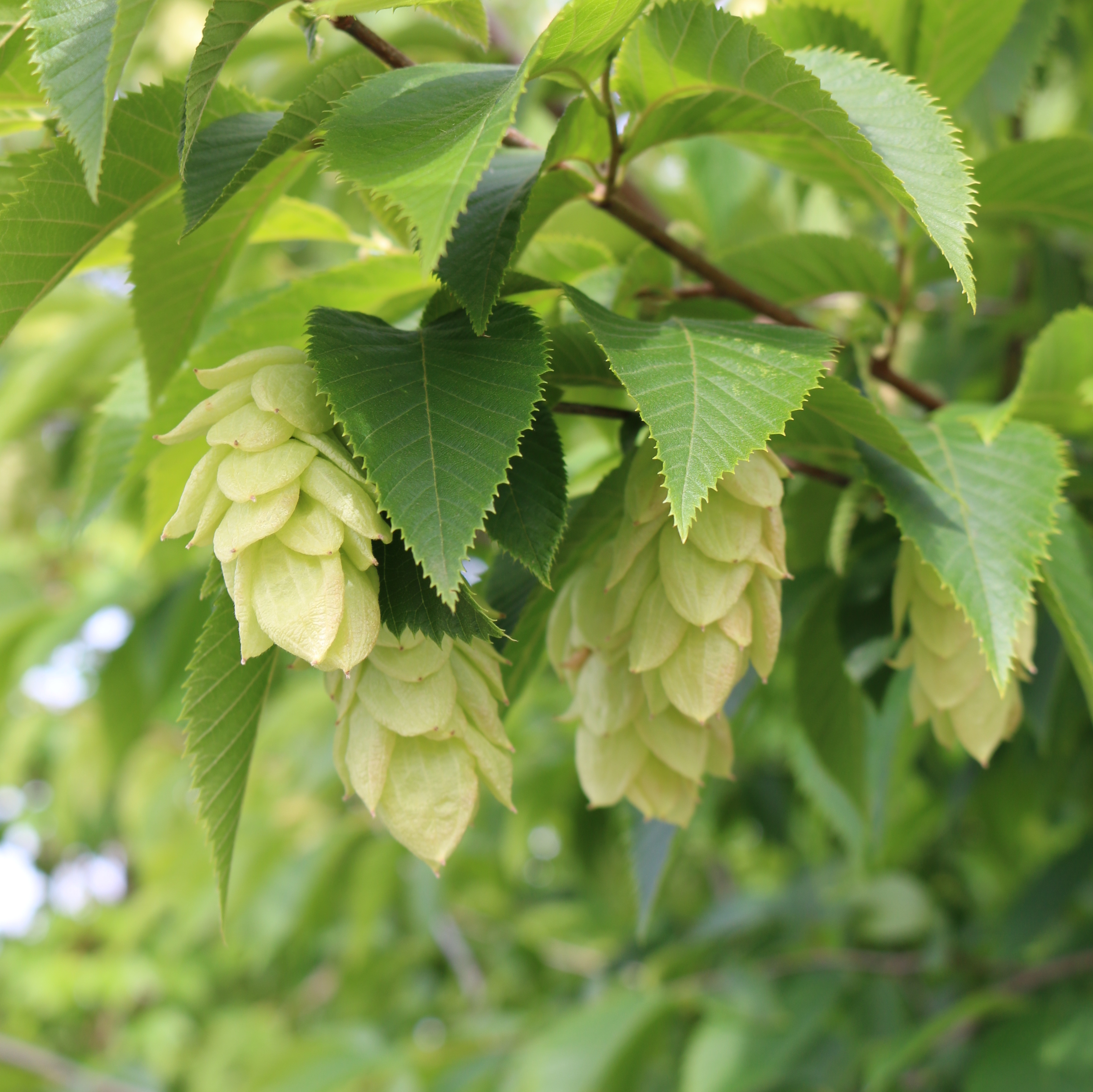 An upright oval tree with hornbeam like foliage and fruit that resembles hops, also described as inflated pods. It is pest resistant and tolerant of drought and alkaline soils; intolerant of salt. It prefers full sun. The fall color is yellow. Native to the mid-west and eastern North America. It is also referred to as Leverwood and Ironwood.