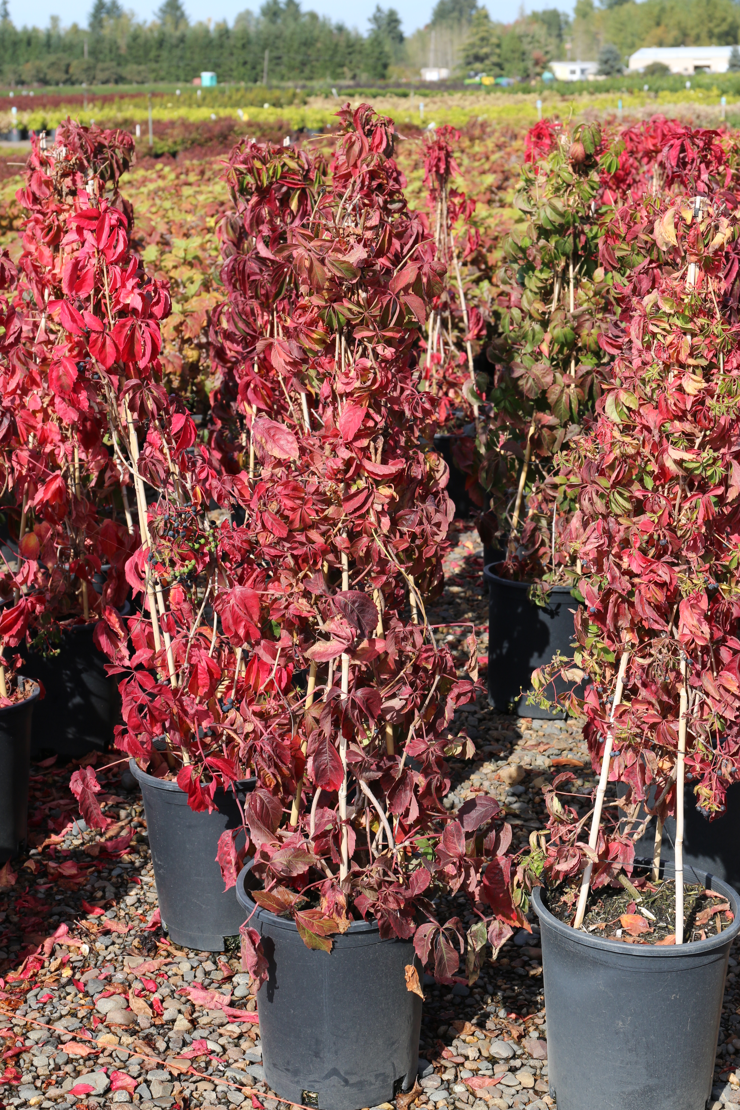 This is a vigorous, self-clinging vine, thanks to the adhesive-like tips of the tendrils, rather than penetrating rootlets. The height it achieves is limited by the structure it is grown on. It can also be used as a ground cover. This is one of the earliest vines to color in the fall and it is persistent and bright red. It is native from the northeastern U.S. down to Florida. This may be one of the most adaptable climbing plants as it tolerates poor soil, sun or shade, cold, heat, pollution and salt.