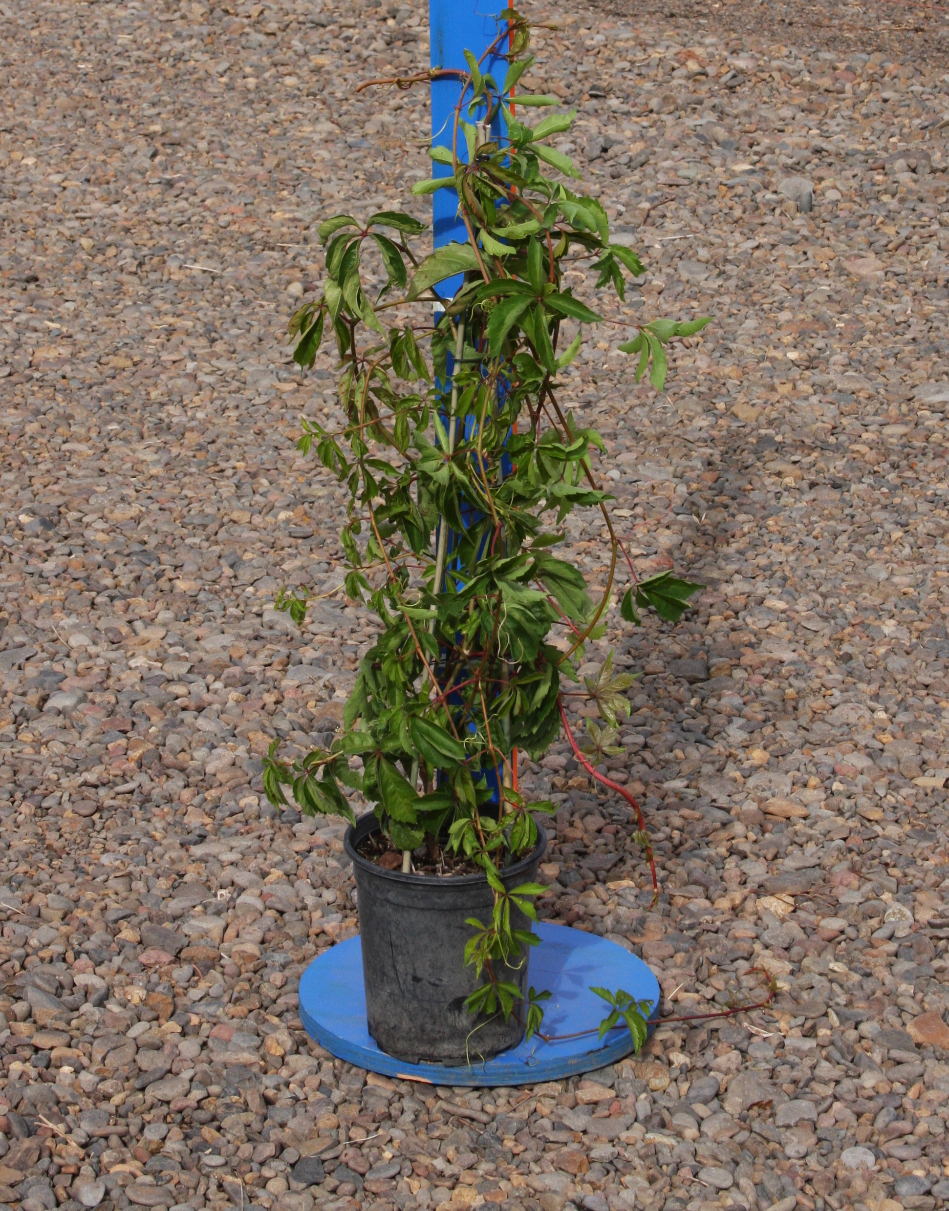 A vigorous, self-clinging vine, similar to P. quinquefolia except for the three lobed leaves. It has persistent bright red fall color. It is useful on walls or as a groundcover. The height it achieves is limited by the structure it is grown on. It is tolerant of poor, dry soils, full sun to part shade. This species is native to China and Japan.