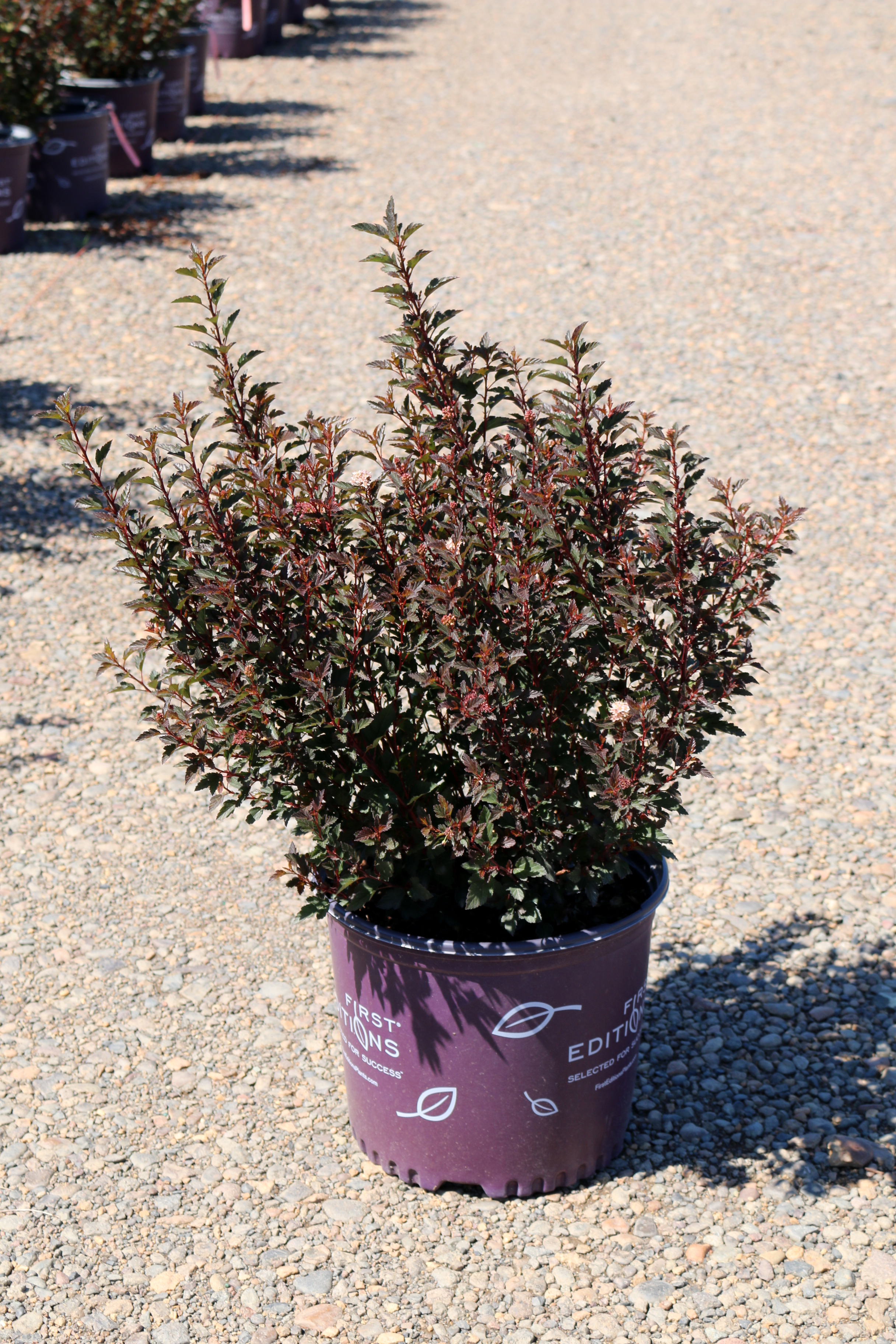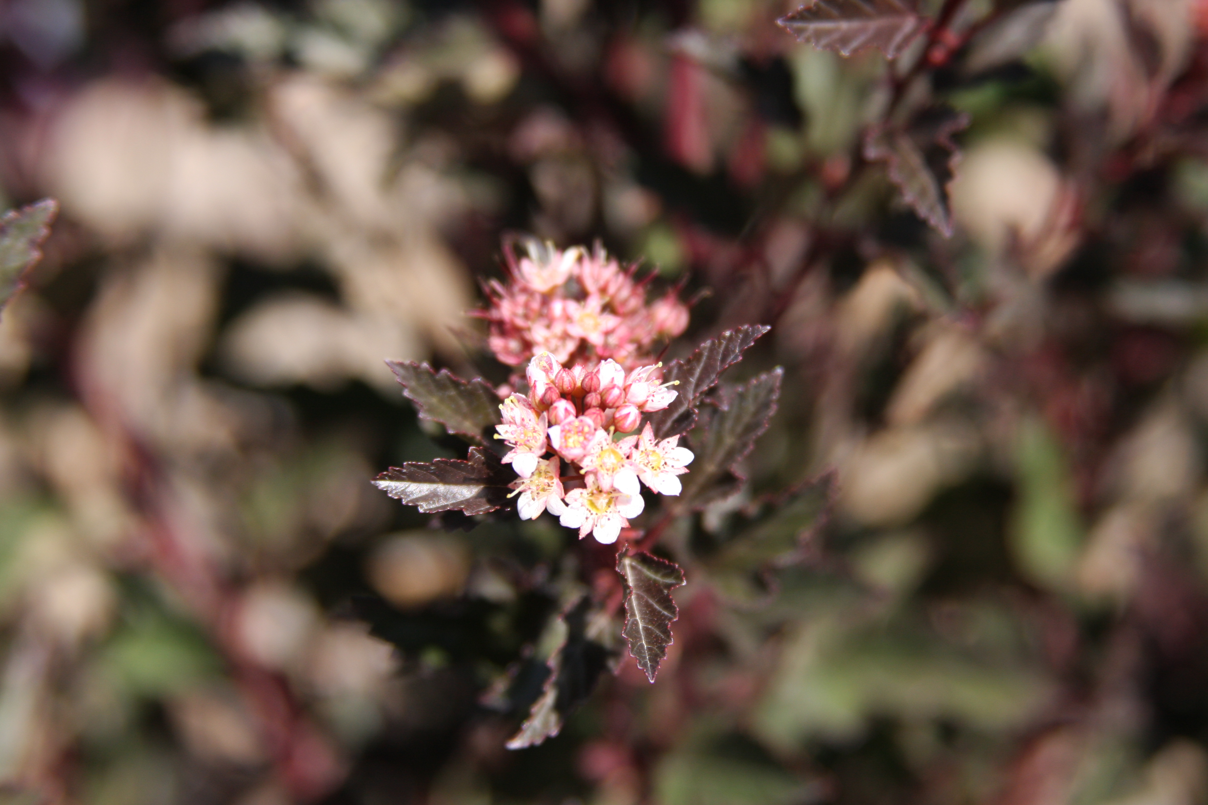 This is a about a half scale version of the numerous dark leafed selections of Physocarpus. The leaves and flowers are petite, making it a great choice for a smaller garden, shrub border, or hedge. It forms a dense rounded shrub with deep wine colored foliage. It blooms in late spring with clusters of small pinkish white flowers. PP 22,643.