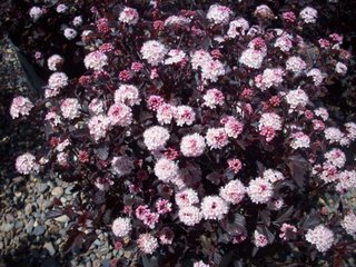 An improved Ninebark with neat compact branching and dark crimson-red leaves.The late spring blooms are pinkish-white and held in 'snowball' like clusters. A Proven Winners® selection. Tolerant of dry, clay soil, with some summer moisture. It prefers full sun to part shade. PP 14,821.
