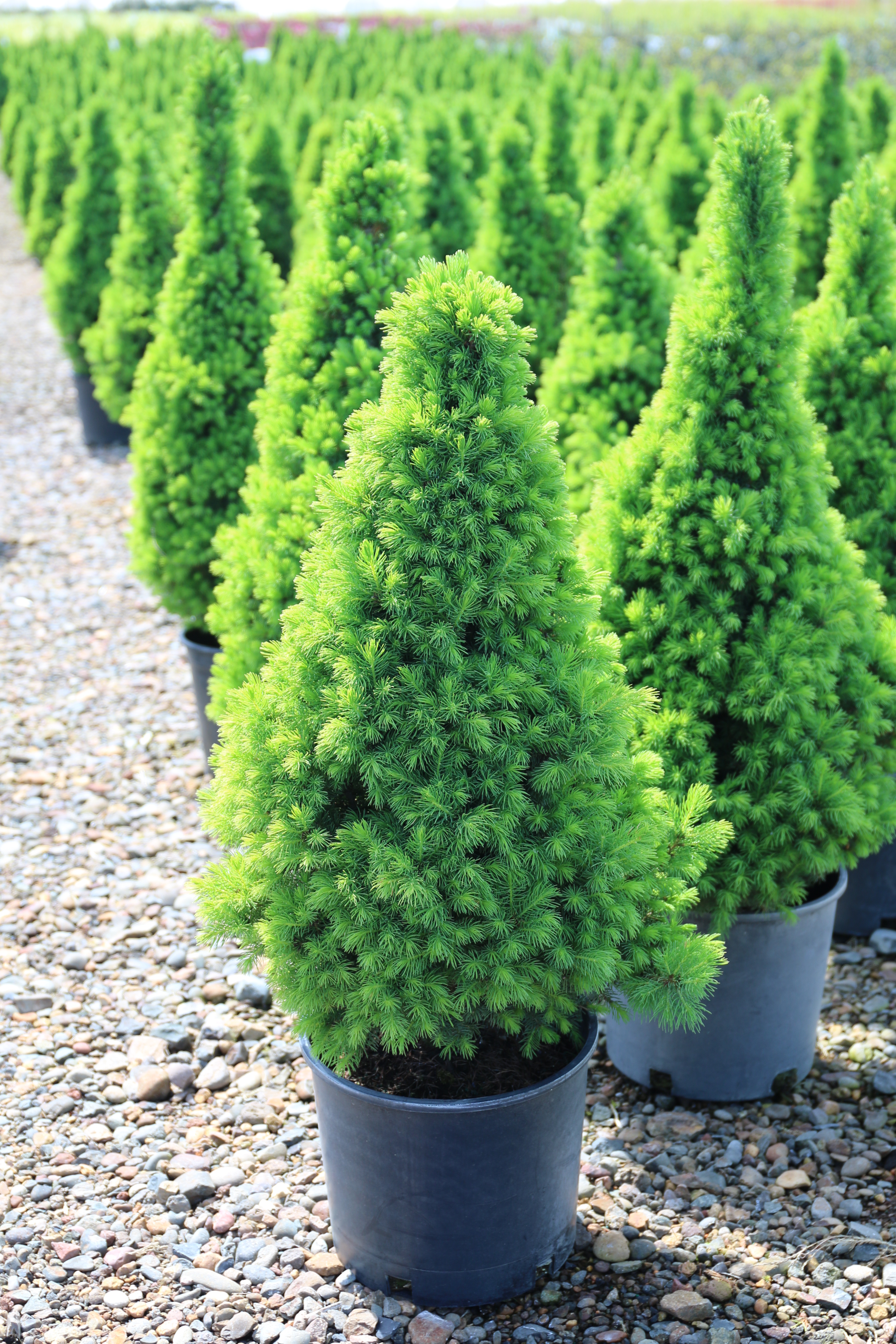 A dense, slow growing, pyramidal to conical evergreen shrub. The new growth is soft, bright green. Prefers moist, well-drained soils and full sun. It benefits from a location with good air flow. Use in the landscape as a specimen, focal point, or for foundation planting. Discovered in Alberta, Canada in 1904.