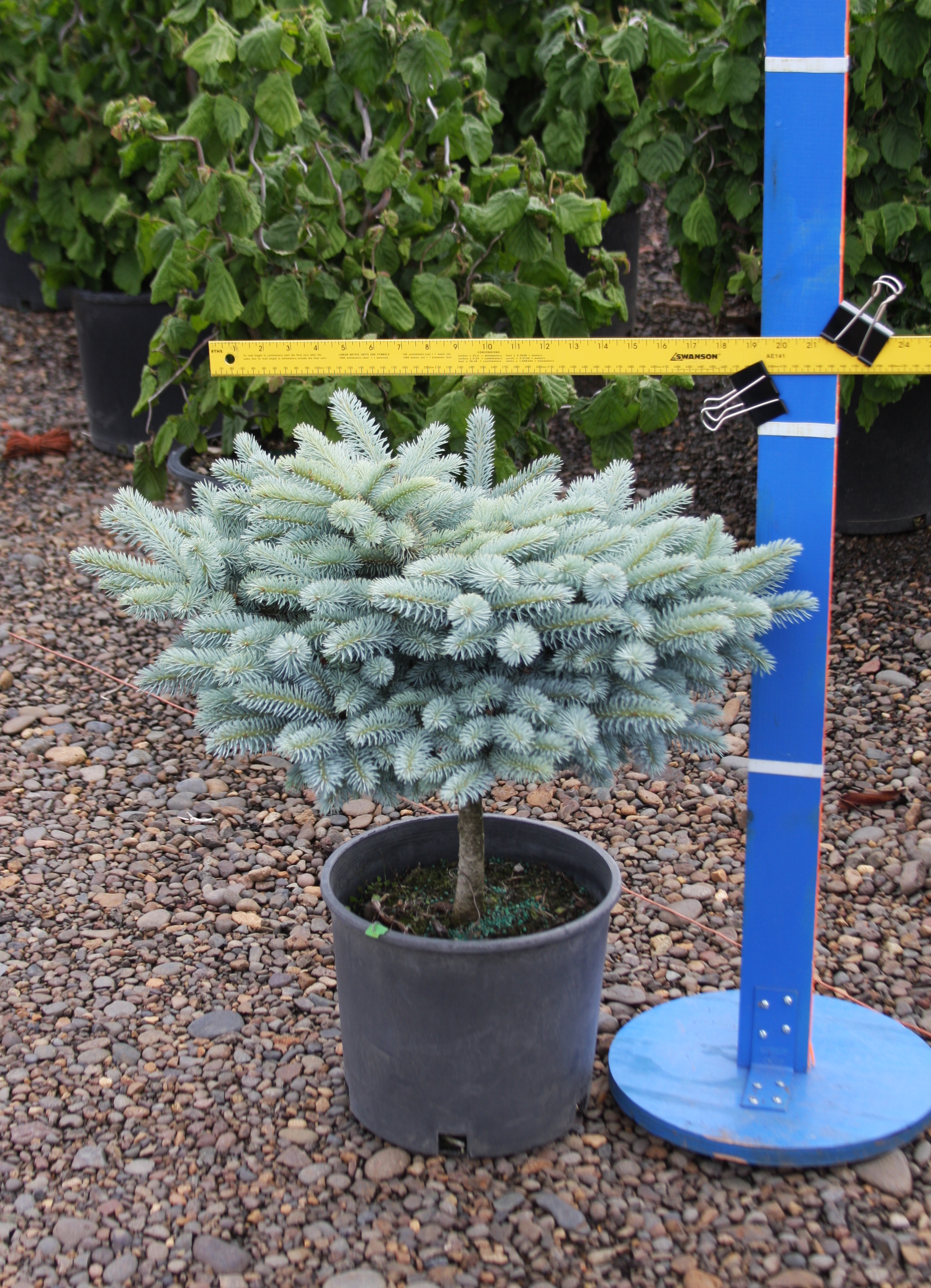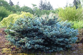 A slow growing, compact, flat topped shrub. The needles are a silvery blue. It performs best in full sun with moist, well-drained soil. Use as a focal point or accent in the landscape.