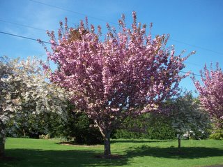 A vase-shaped tree, that can become more rounded with age. The leaves emerge with a bronzy tint, become green in summer, then turn to orange and bronzy red in the fall. It is best known for the large, fully double, pink blooms that cover the tree in spring. It flowers best in full sun, preferring a moist, fertile, well-drained soil. This is a sterile tree.