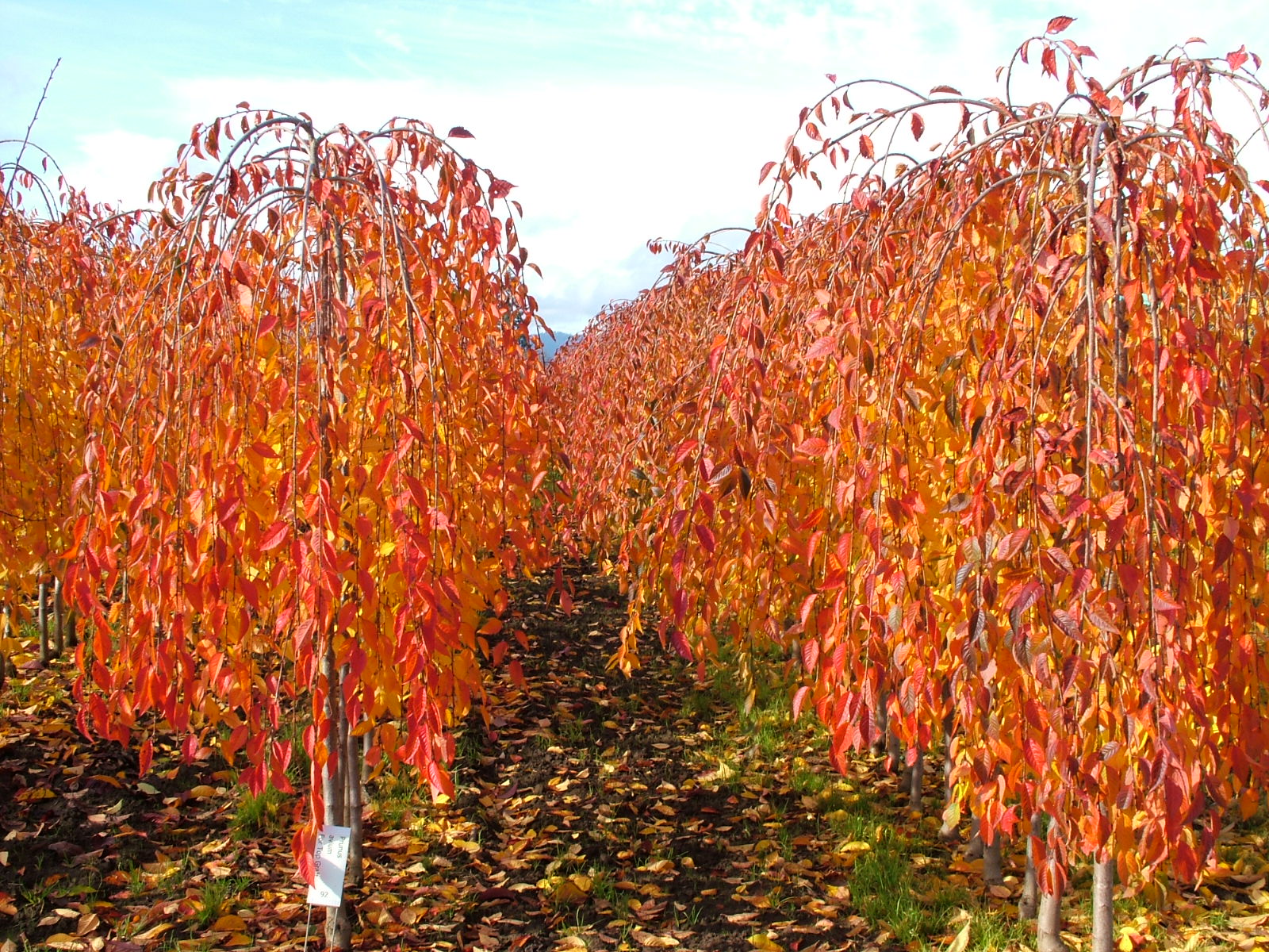 A gracefully weeping tree that can be adapted to many forms, including top-grafted, base-budded and occasionally serpentine. Single white flowers cover the tree in early spring. It is a fine textured form, with small delicate leaves. The foliage turns to orange and yellow in the fall. It is more pendulous than other weeping cherries. Grow in a well-drained site in full sun. Prune after flowering if needed.
