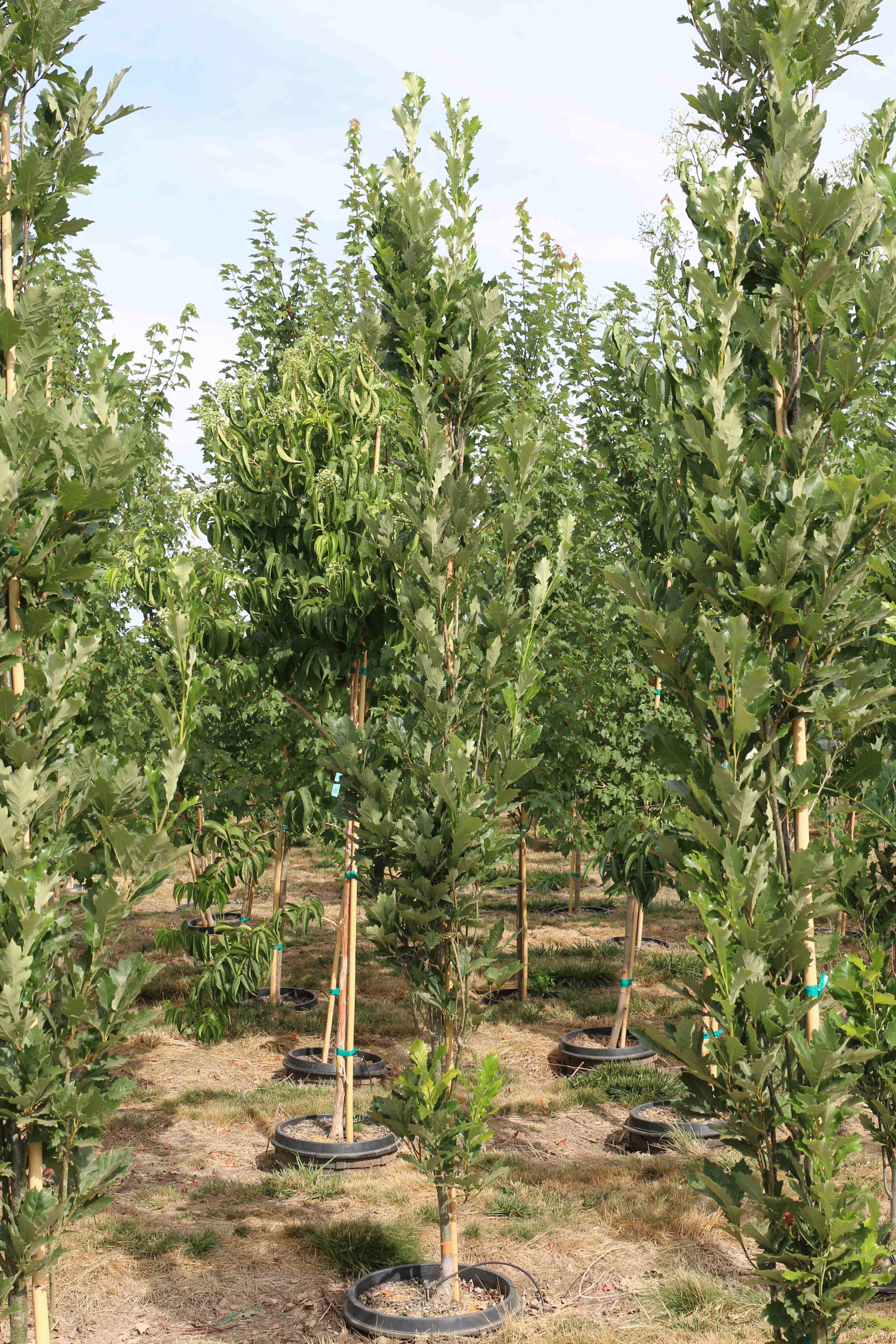 An upright, columnar tree with dark green leaves and silvery undersides. Resistant to powdery mildew, wind and moderately drought tolerant. Selected from seedlings collected on the University of Missouri campus.