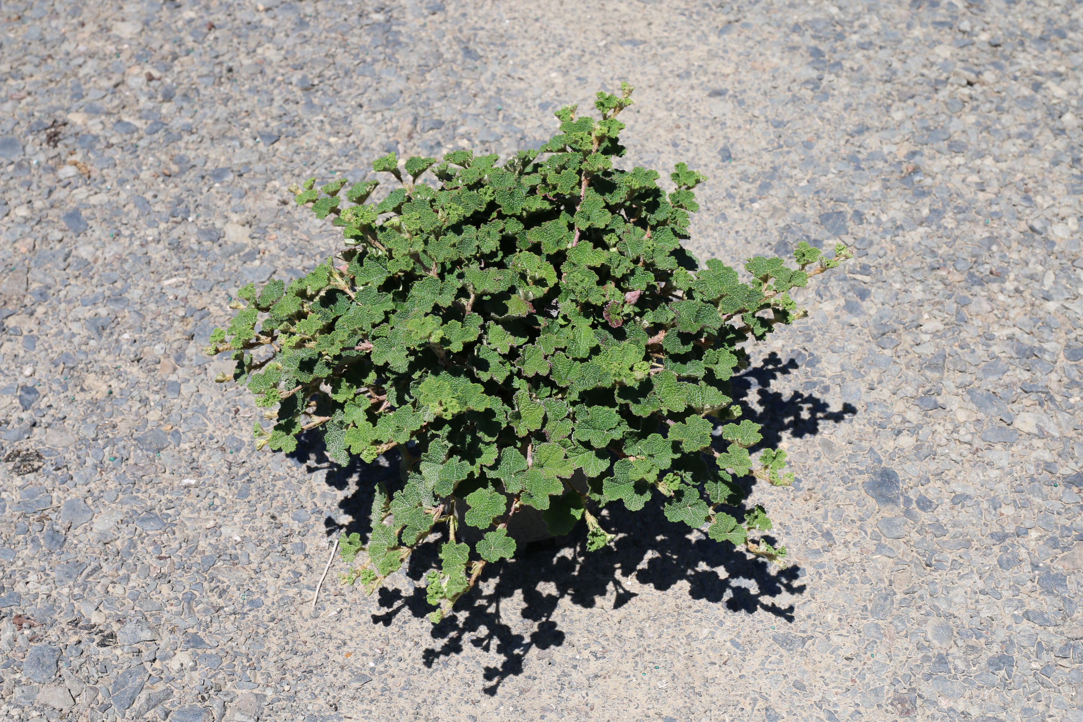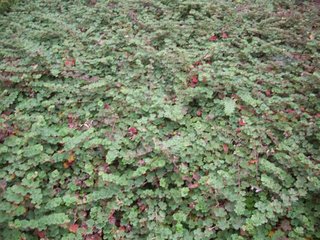 A spreading groundcover with crinkled, dark green leaves, white flowers, and a burgundy winter color. It will produce orange-red fruit that resembles a raspberry. It takes heat and drought but does well in shade, too. It will cascade over rocks and ledges, and can form a dense, low mat. Also known as Crinkle-leaf Creeper or Raspberry Creeper.