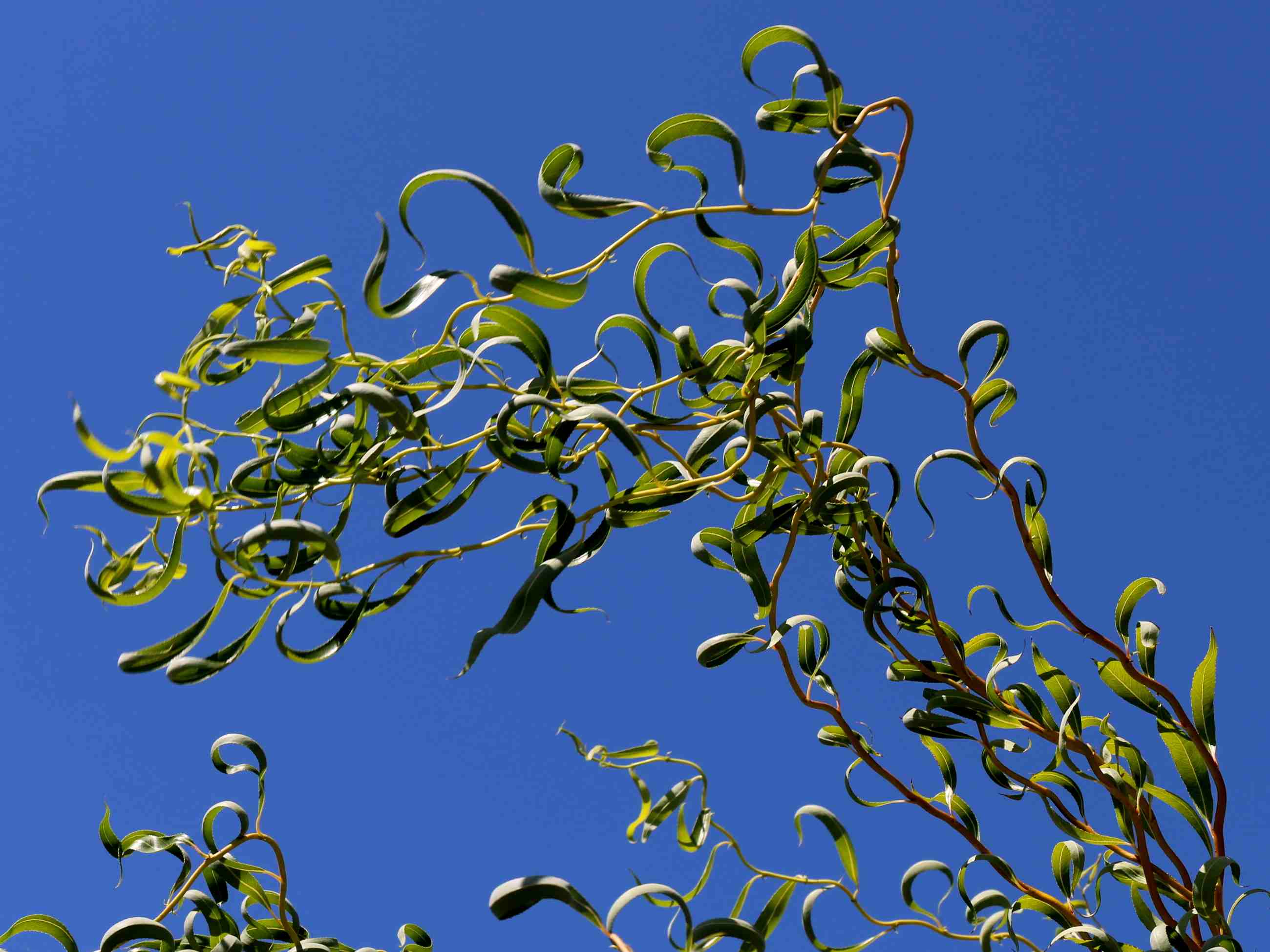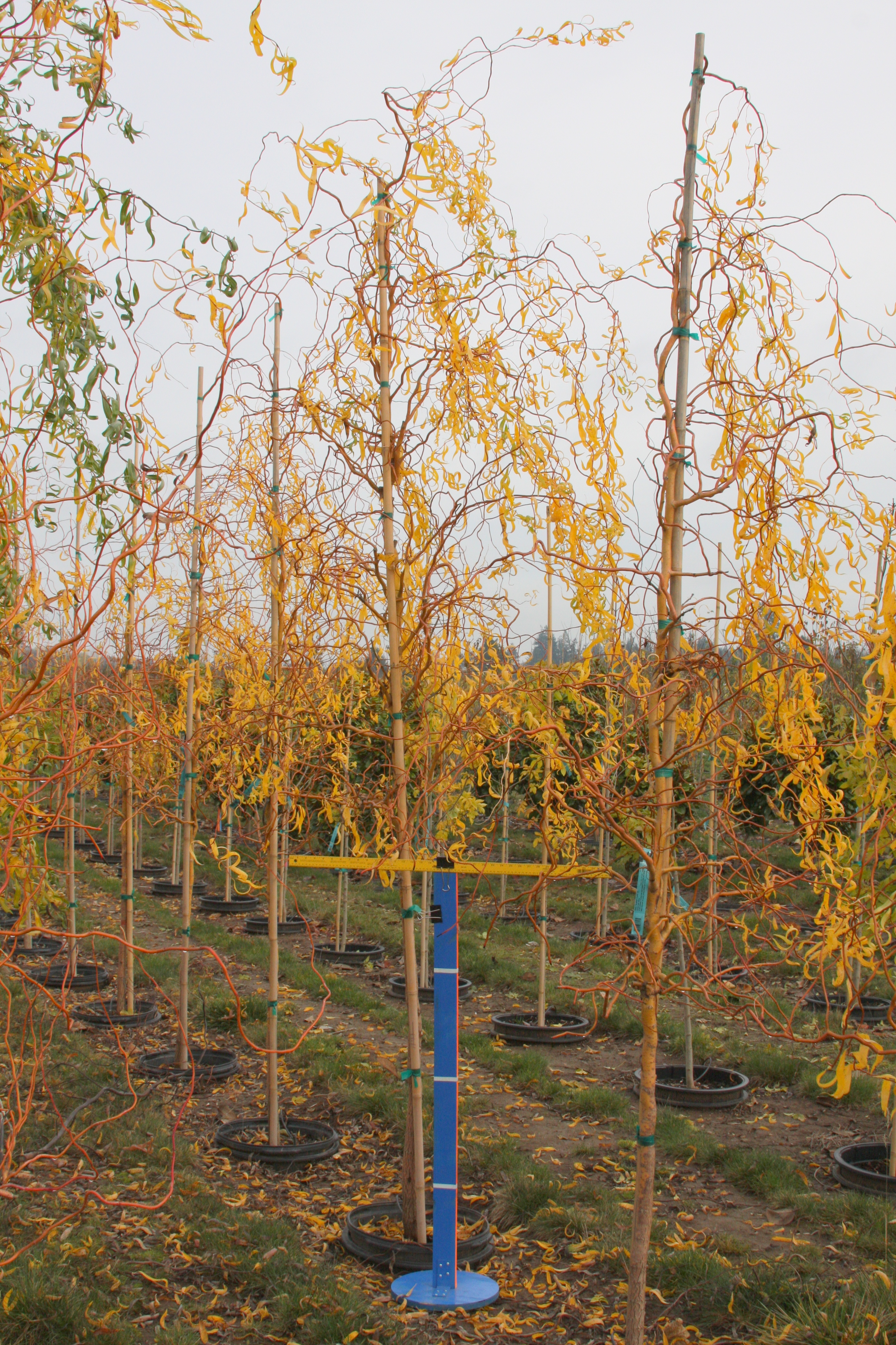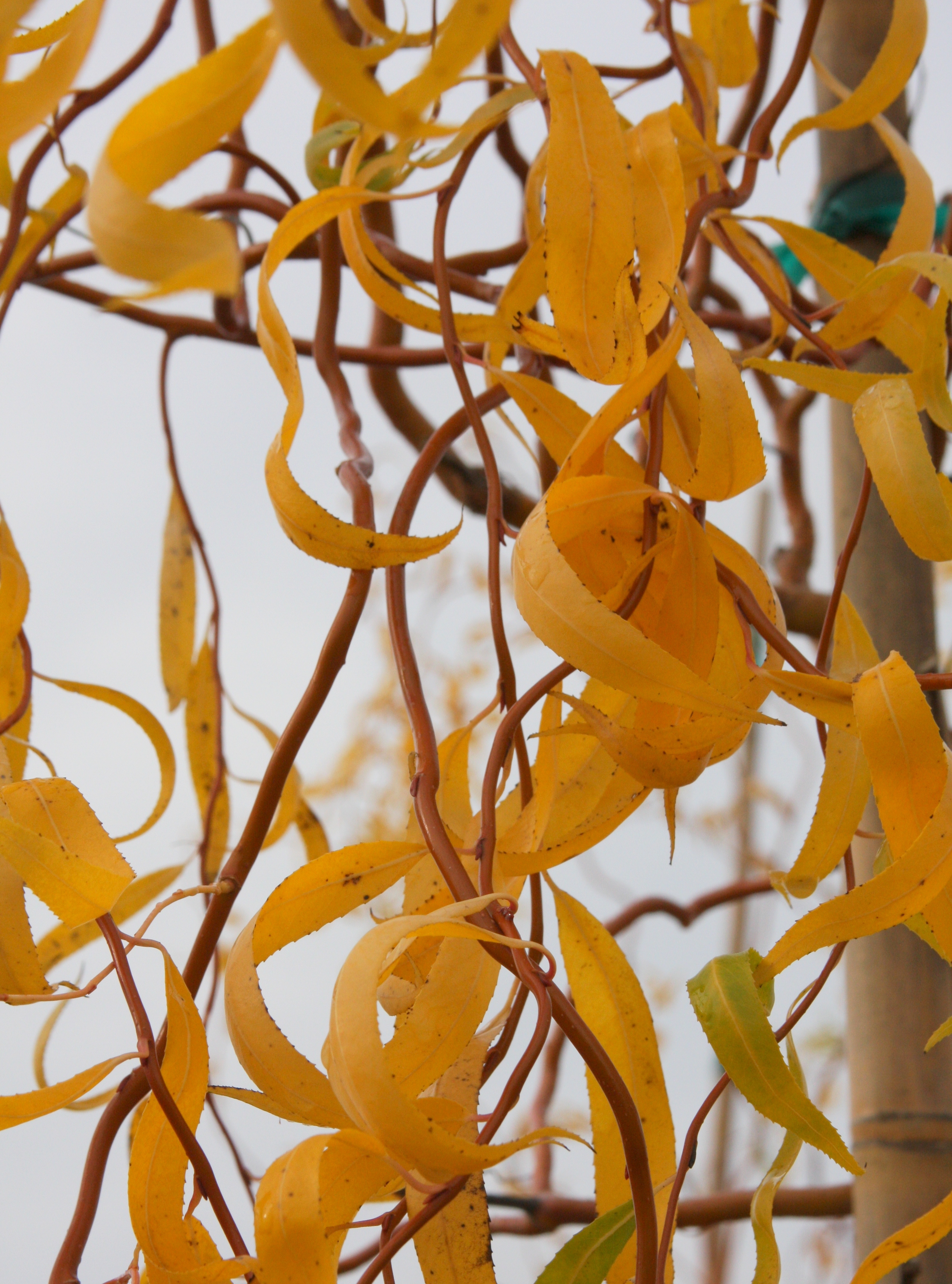 A fast growing rounded tree with twisted branches and leaves. The older branches are gold, young stems are scarlet. A form of corkscrew willow, the branches may be used in floral arrangements. It does best in full sun and adapts to many soils. Prune as needed to promote the desired form. Grown both as a multi-stem or in tree form.