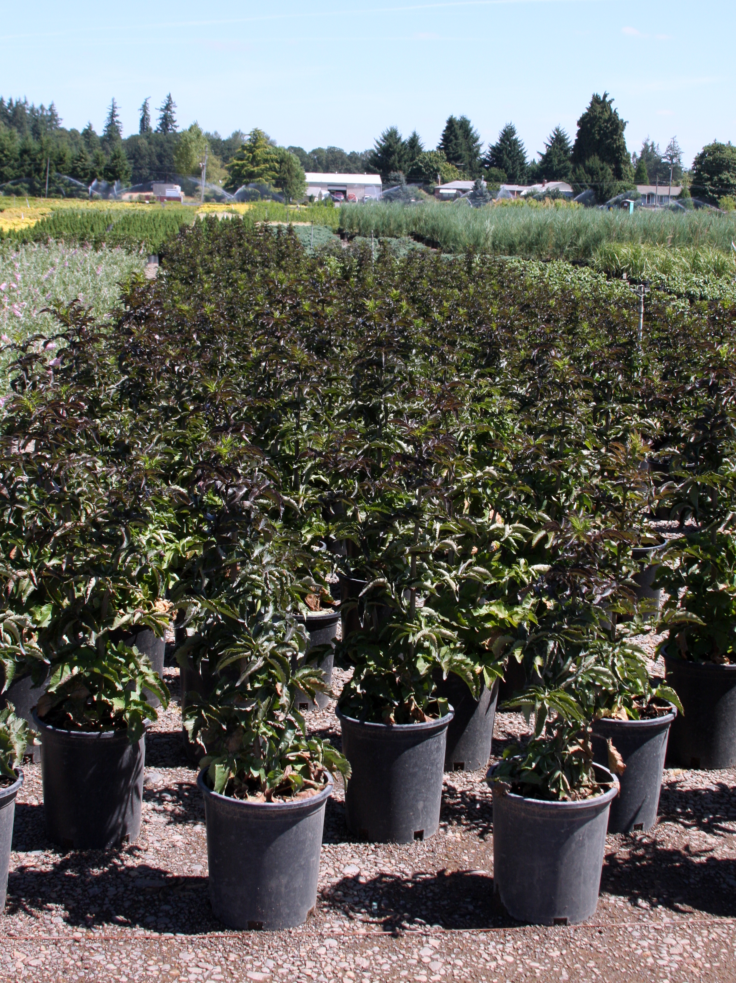 A stiffly upright, columnar shrub with deep black-green, glossy foliage. Blooms in spring with light pink flowers that are followed by blackish-red berries in fall. New leaves emerge light green creating a wonderful two-toned effect. Use in the border for a tall accent or for screening. It can give a garden a modern, contemporary look. PP 23,633.