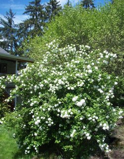 A large shrub with white, rounded clusters of flowers that cover the plant in the spring. It does not set fruit. The deep green foliage turns bright red in the fall. This old-fashion shrub is widely adaptable and will thrive with little care. It prefers a site in full sun to part shade, in an average, medium moisture, well-drained soil. Prune as needed after flowering.